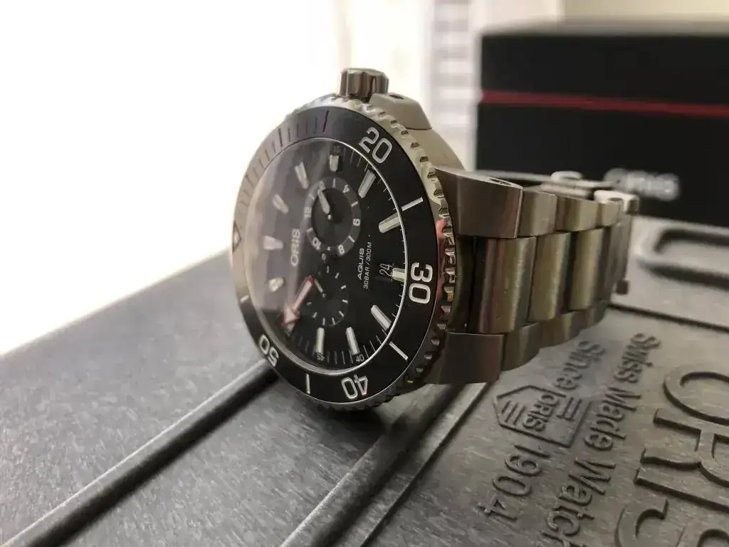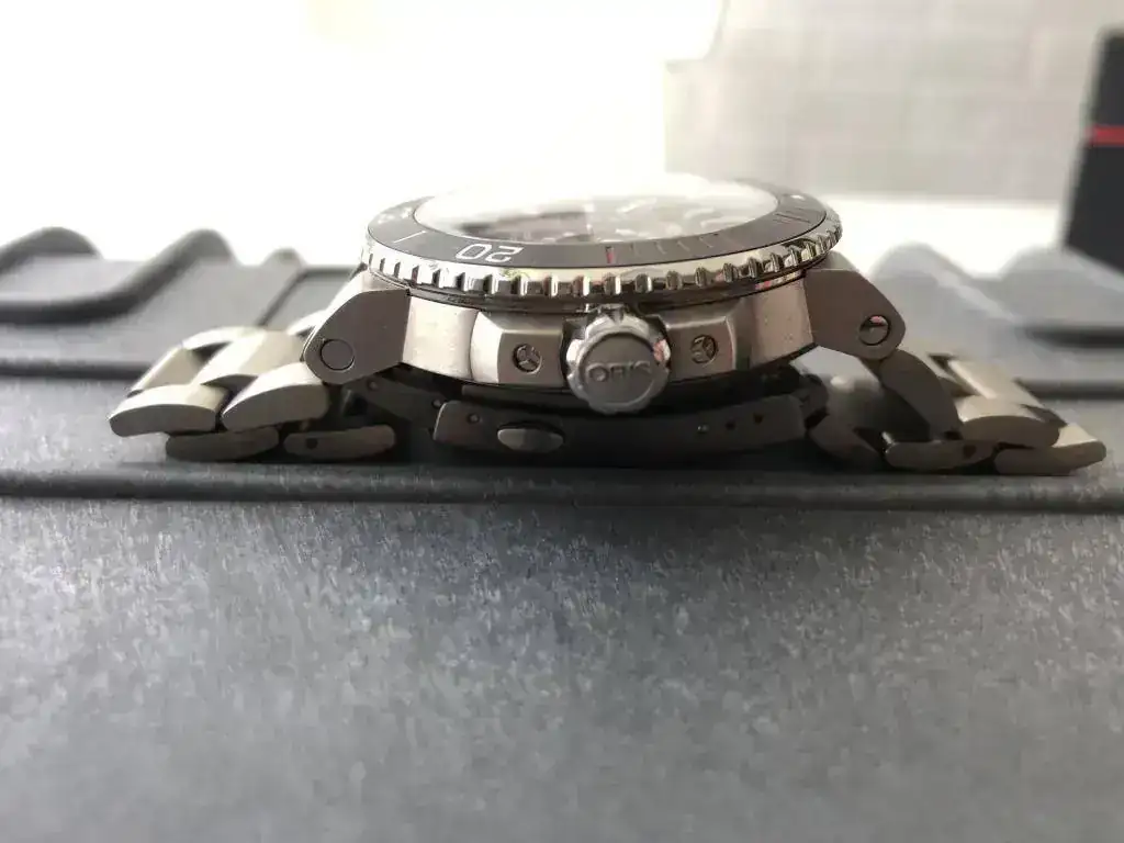 El reloj se encuentra en un estado excelente; sin golpes ni marcas profundas; sólo alguna señal típica del titanio. Bisel y cristal impolutos.