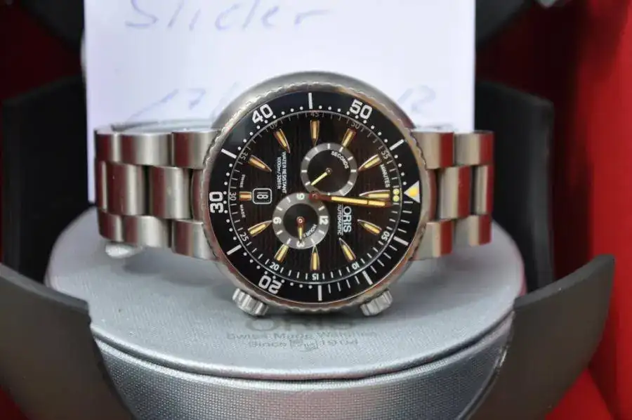 Hola amigos , pongo a Cambio mi precioso Oris regulador de 49 mm (46mm de bisel) No se ve grande en la muñeca ... El reloj es de Diciembre 2008 y la over-garantia caduco el 2011 trea correa de caucho oem oris cortada para muñecas de 16.5 cm con con cierre oris, el reloj esta en perfectas condiciones en el ciere del armis tiene las tipicas microrayas.