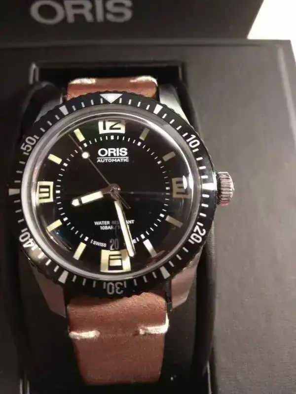 Pongo a la venta mi Oris Sixty-Five en muy buen estado sin apenas marcas de uso de absoluto reestreno. Único propietario. Puesto en contadas ocasiones y su estado es de 99%. Aún le queda garantía oficial y no ha sido dado de alta en myoris por lo que se puede sumar un año adiciona. Va con la correa de caucho original más una correa de cuero con mucha vida por delante.