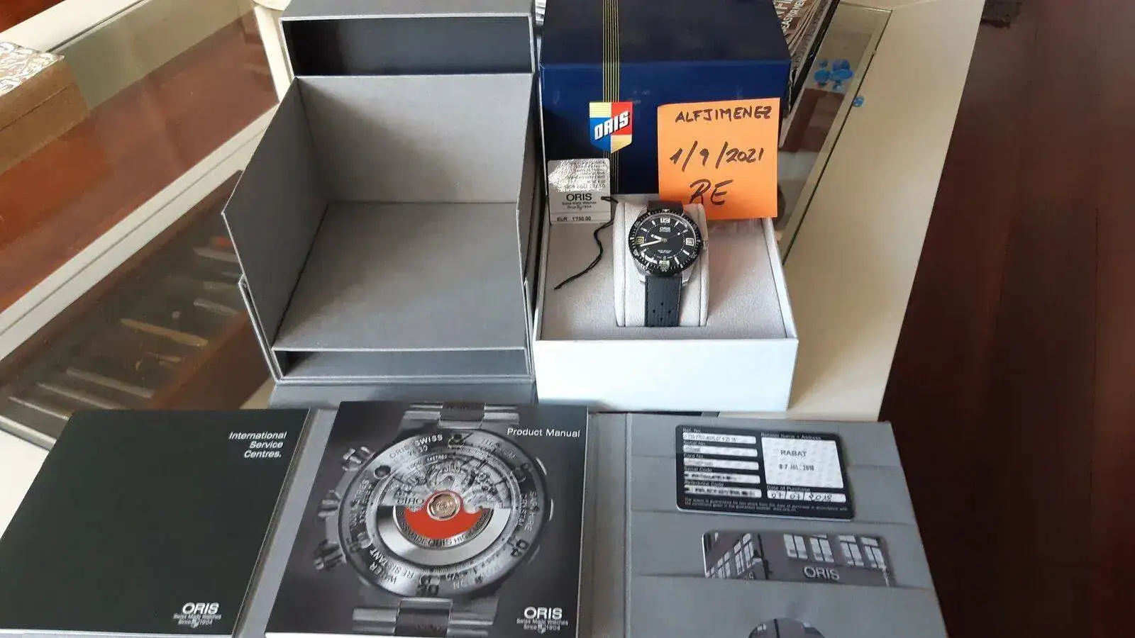 Tras haberlo disfrutado durante un tiempo vendo mi Oris Sixty Five Heritage con solo tres años de cuidadoso uso. Aunque más abajo está la ficha, quiero señalar que es el estado es fantástico, sin una sola marca apreciable. Si dudas en alguna foto, puedo mantarte más. Es un reloj que llama bastante la atención por su original dial, negro, azul y crema (a mi me recuerda a una ficha de poker) y viene con su correa de caucho con cierre firmado, todo original. El set es completo y está en perfecto estado, tanto por dentro como por fuera. El precio para este reloj con un PVP de 1.750 € es de 990 €, con envío asegurado incluido o entrega en mano en Madrid. Pago por transferencia, bizum, etc...