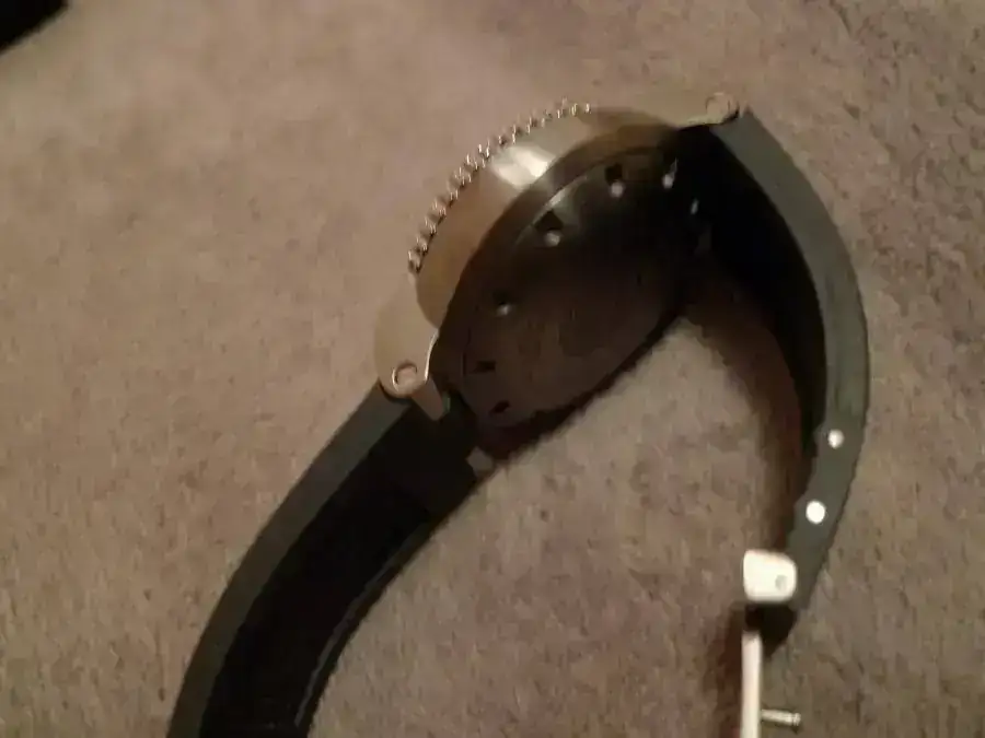 Viene con correa de caucho original cortada a 17,5 mm y es de Abril de este año... osea que le queda muchísima garantía por delante.