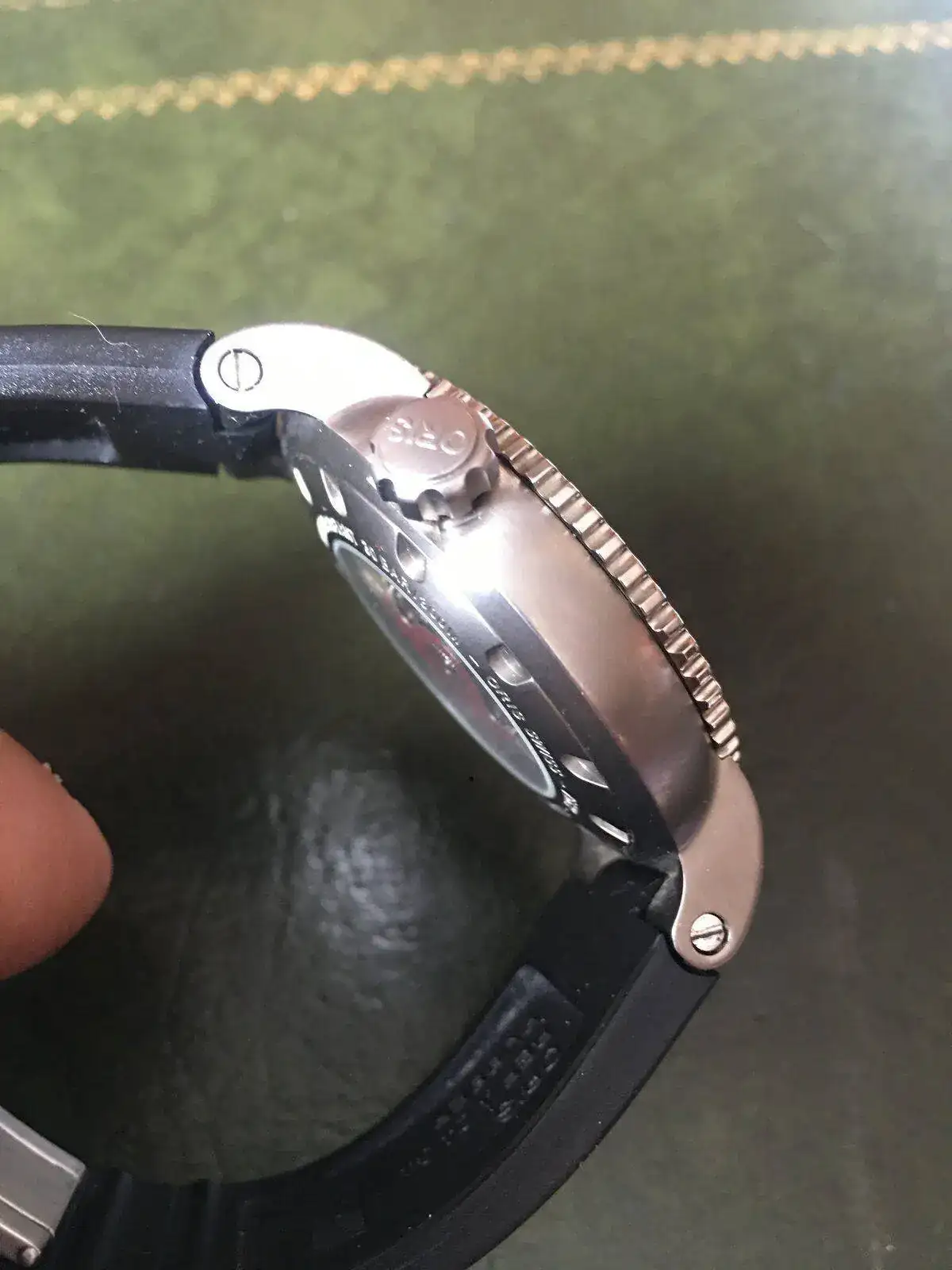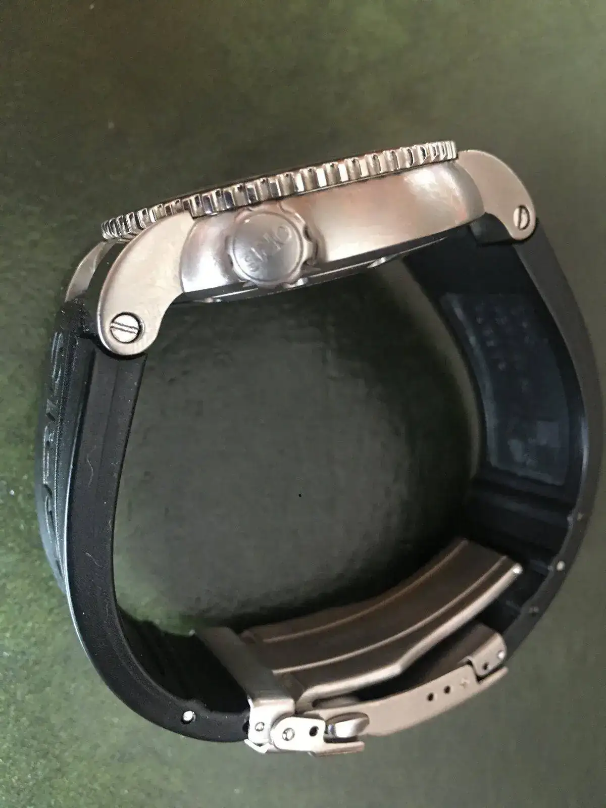 Potente diver, 300 metros, con caja tronco cónica de 44mm, y que en la muñeca cae como un guante.