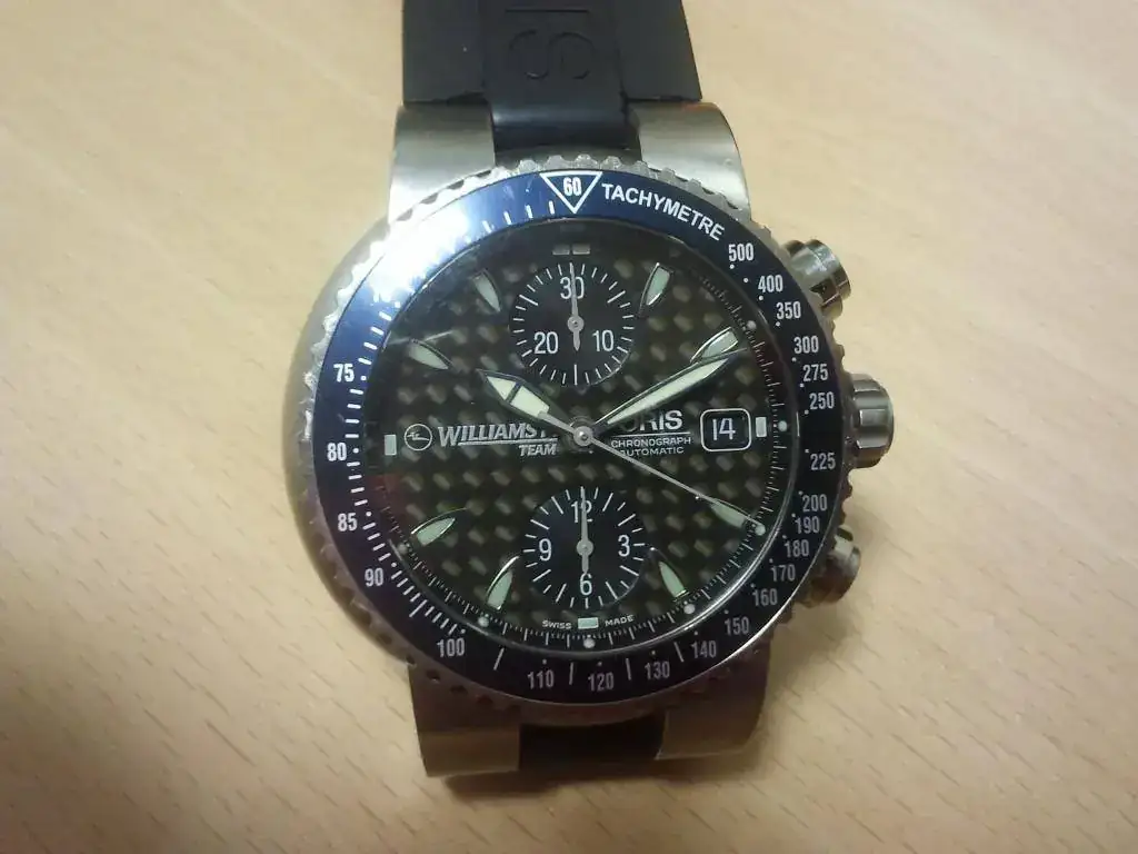saco a la venta este magnífico Oris TT1 Chrono edición limitada a 2000 unidades de Williams y de TITANIO. El reloj está revisado en Agosto de 2015 en Sat Oficial Cronomar como muestra la foto. Presenta señales de uso en el cierre del caucho, que se irían con una pulida, y alguna que otra marquita no significativa. En definitiva, que no está en absoluto cascado. A destacar que a pesar de ser un crono tiene estanqueidad de 300 Metros y que cumple su función estanca, y además por la noche tien una luminiscencia espectacular, aguanta toda la noche sin problemas, con una visibilidad óptima. La corona va a rosca y va muy fina, así como la marcha general del reloj y del crono que resetea perfectamente. A destacar que por ser edición limitada es difícil encontrarlo por menos de 1200€ . Dispone de correa de caucho con cierre de titanio, y su precio es de 790€ sin cambios. Si además se desea el armis de titánio que vale una pasta y es superdifícil de conseguir el precio son 890€. Portes a cuenta del comprador. por favor no cambios. Si alguien quiere más fotos que envíe un privado con número de whatsapp y las tiene en un minuto.
