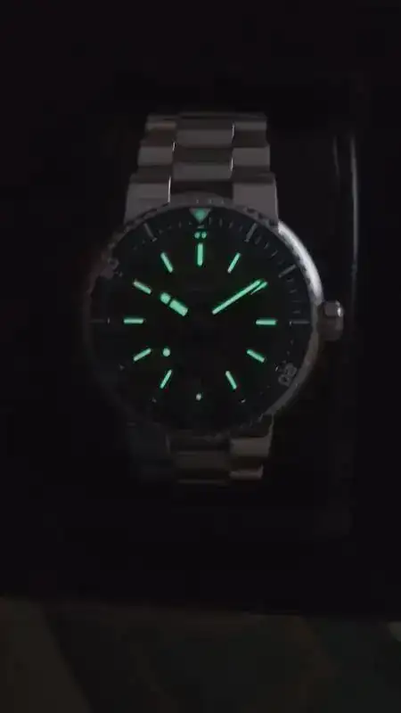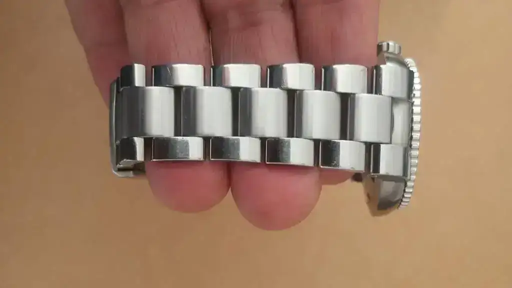 El estado del reloj (quizás soy exhaustivo con los detalles, pero prefiero curarme en salud), es tal como se refleja en las fotos, sin nada grave que reseñar - el brazalete presenta los típicos pelillos normales en un armix pulido a espejo, y un mínimo detalle en el bisel a la altura de los indicadores de segundo 58 y 5 -este último sólo visible en determinadas condiciones de luz-; caja y cristal sin desperfectos aparentes.