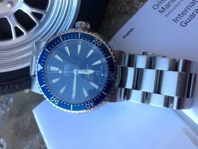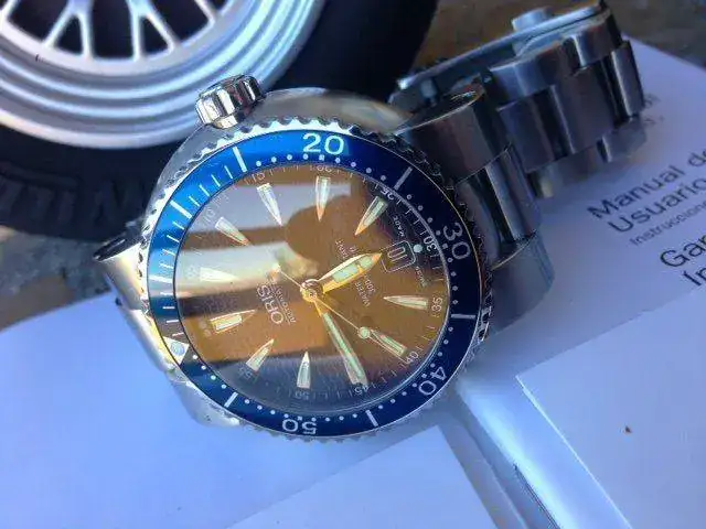 La llegada de otra pieza mas importate me obliga a vender mi Oris TT1. El reloj es de 2008/2009. El reloj tiene un tamaño de 44mm con una caja conica tipica de este modelo. Como conoceis lleva un movimiento Eta personalizado por la marca suiza. Tiene cristal de zafiro, fondo visto, bisel unidirecional y el armys ha sido cepillado completamente. El reloj esta en un estado bueno no teniendo marcas en el cristal, aunque tiene las tipicas de uso en armys y bisel, pero nada importante. El reloj va acompañado de una caja Oris, que es la tipica del neumatico de F1 y los papeles correspondientes.