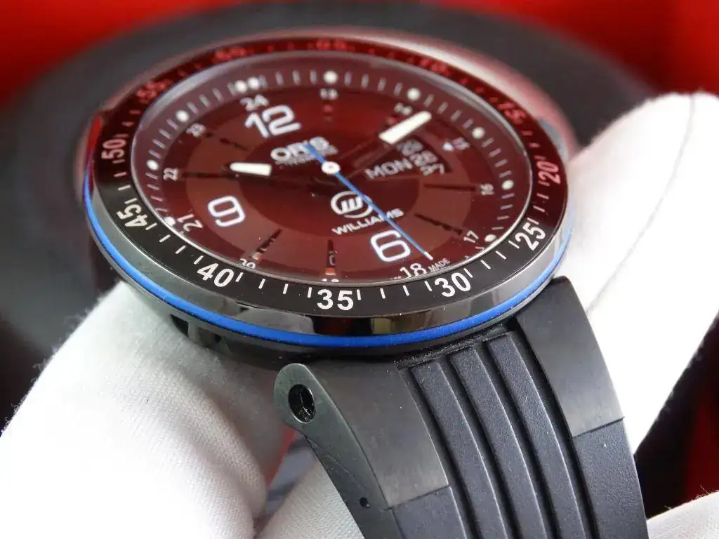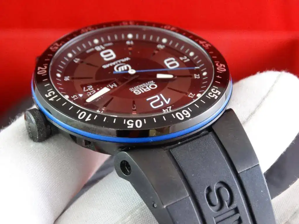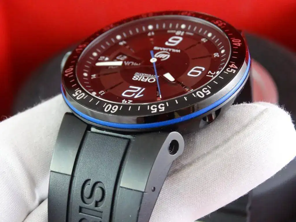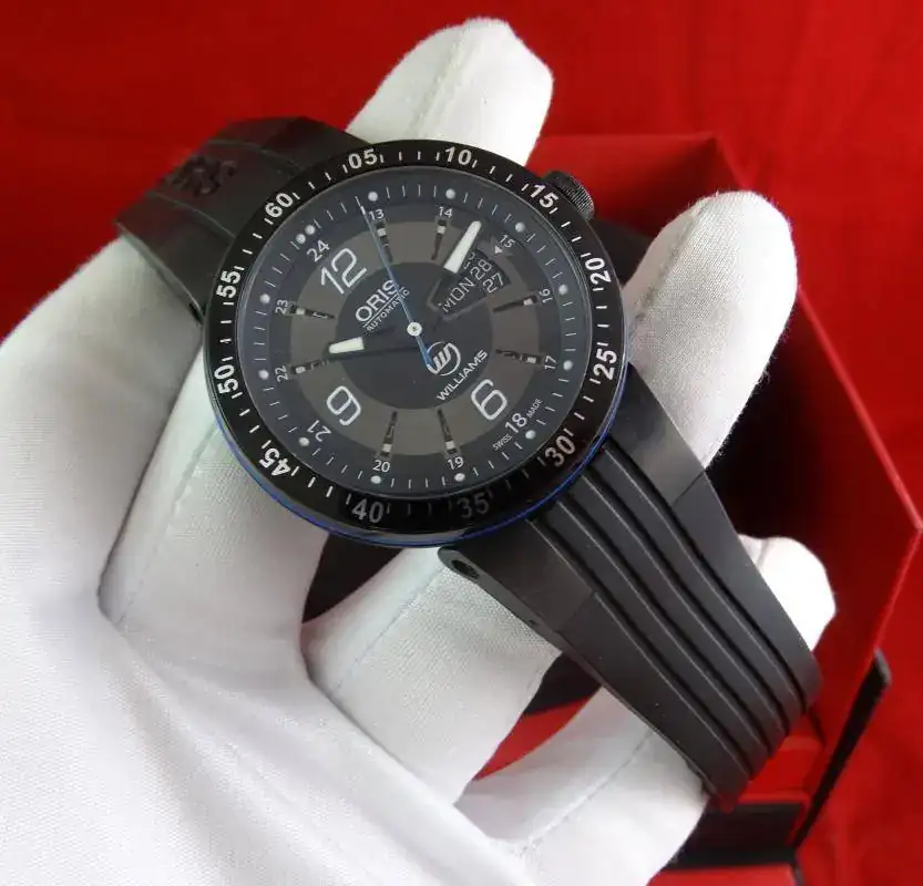 Hoy sacamos a la venta un reloj deportivo, polivalente y de evidente inspiración Racing. Todos sabemos que Oris hace bien las cosas y produce unos relojes con una calidad muy notable a unos precios realmente razonables. El modelo que promocionamos hoy destaca por su diseño, pero sin abusar de la inspiración que le ha ofrecido la F1, convirtiéndolo en un reloj deportivo pero muy usable en diferentes circunstancias. Su tamaño lo hace un reloj con mucha presencia, pero el diseño de caja y de asas le aportan una comodidad muy buena.