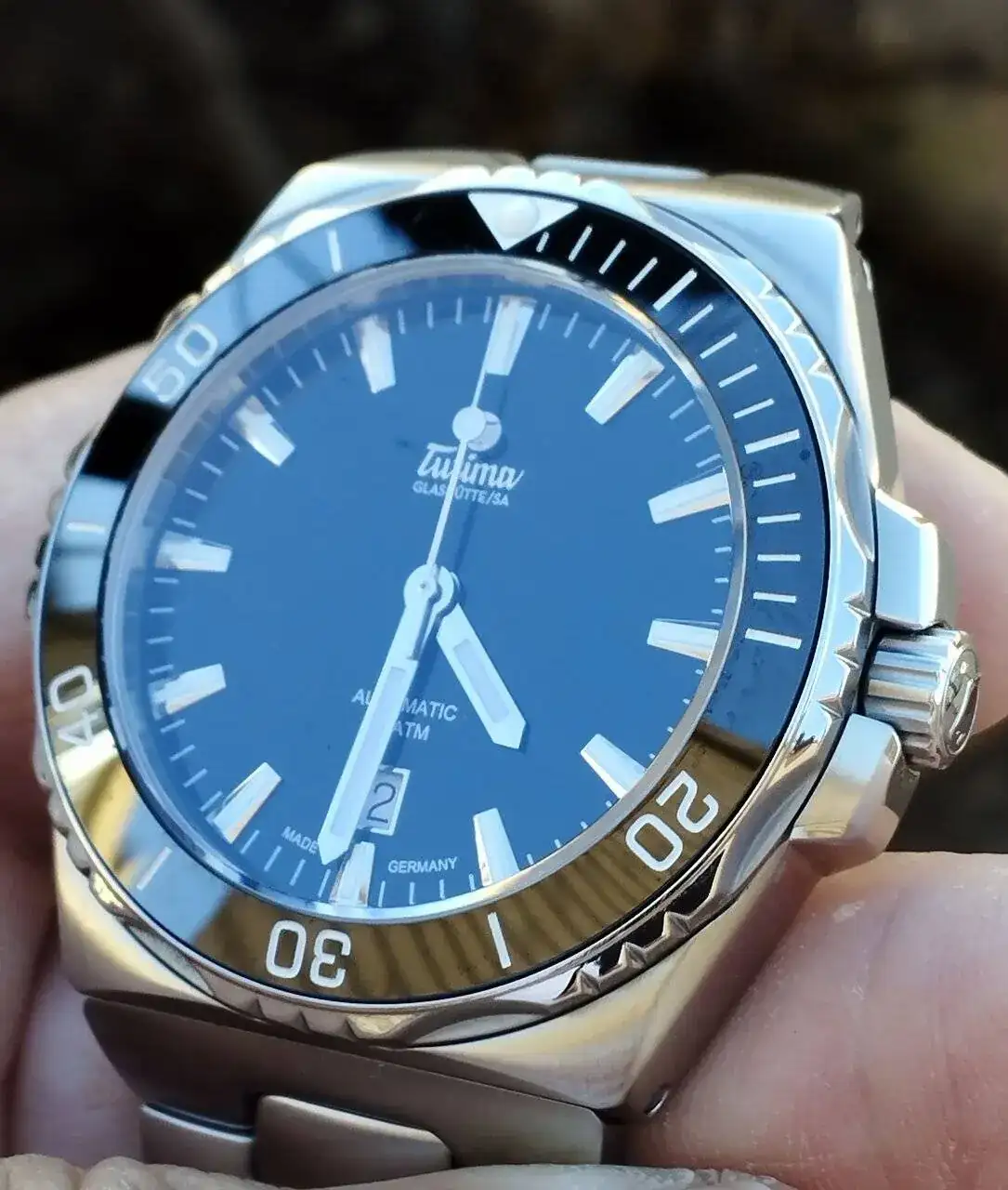 Este reloj viene (y es un dato, que debido a su “elevado” precio, no convencía, por decirlo suave, algunos compañeros a los que pedí consejo), viene con un “sencillo” calibre ETA 2836-2, que Tutima retoca y pone a punto, renombrándolo como Kal. Tutima 330.