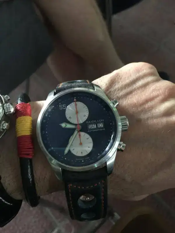 Llevaba un reloj con una Valjoux 7750 /archiconocida) y de un diseño que me gustó mucho, más me gustó cuando me metí en la web de la marca y vi lo que hacían (de hecho me he comprado unos guantes de cuero marrón que son una pasada para mi, claro).
