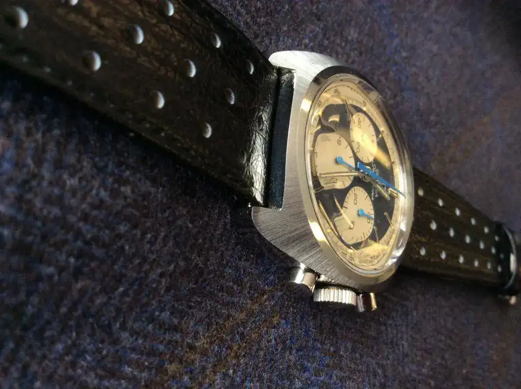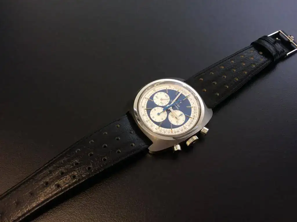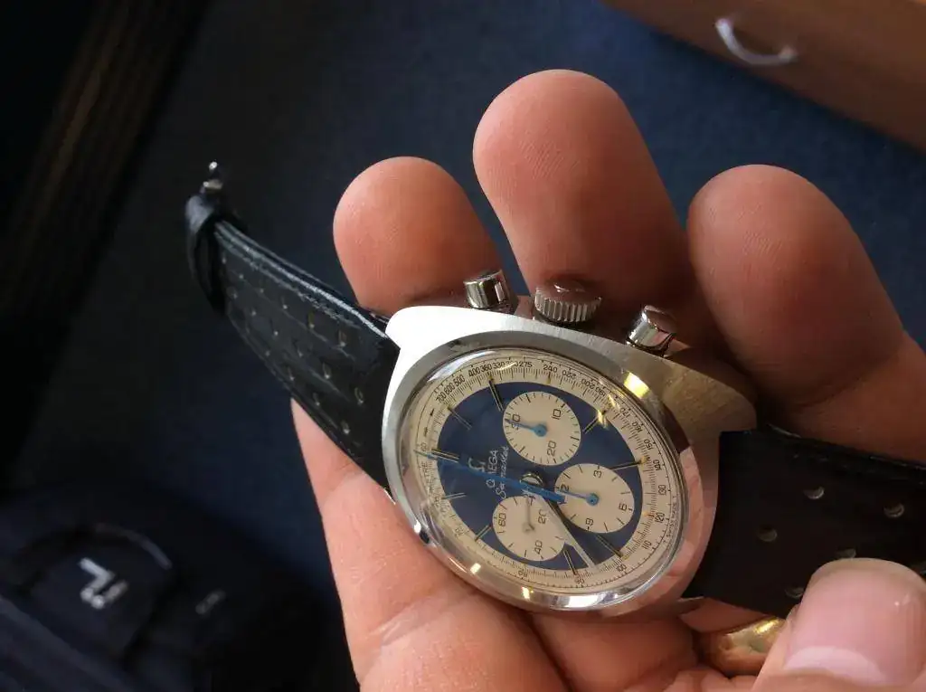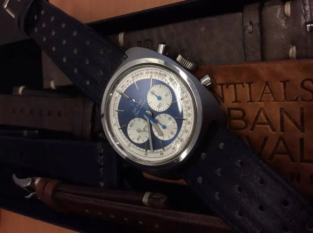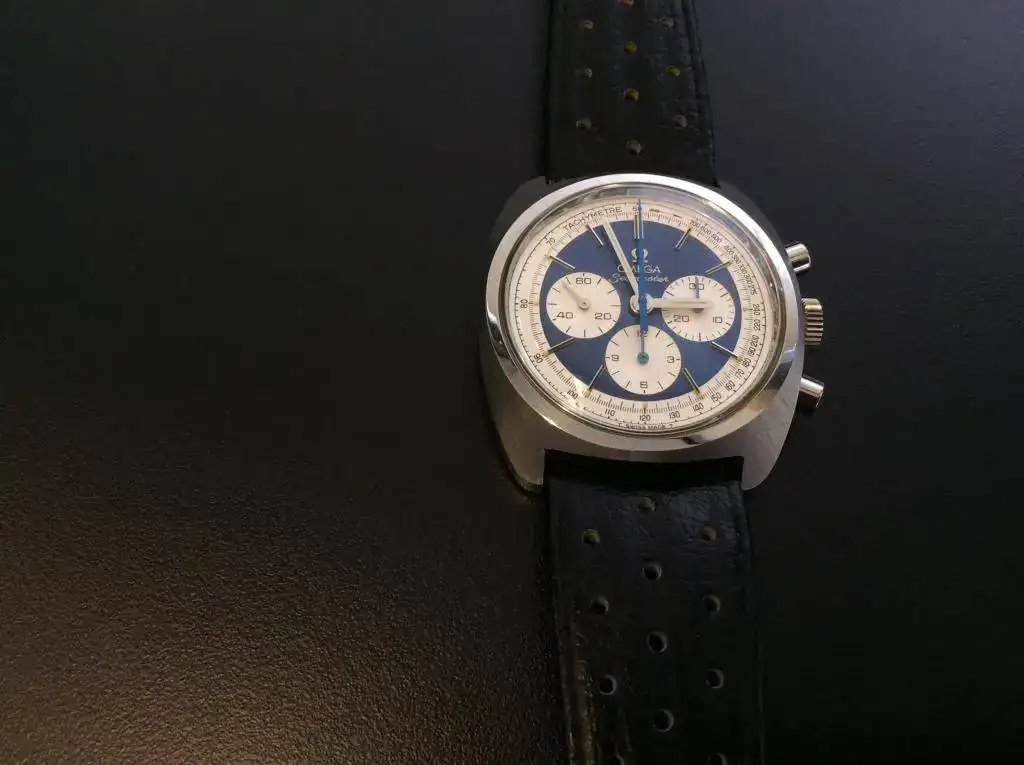 Sin llegar a esas alturas, este Seamaster Chrono tiene un atractivo indudable. Se trata de una esfera panda invertido en un color azul muy difícil de captar: