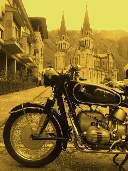 Aquí mi Bmw R50/2 de 1960, aunque no es una foto integral me resulta una foto muy bonita. Una moto con un tacto electrico (no vibra absolutamente nada) y aunque con solo 26 cv el motor es muy elastico y con la Earles puedes dar cera a muchas motos modernas en carreteras de montaña.