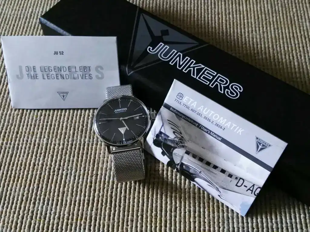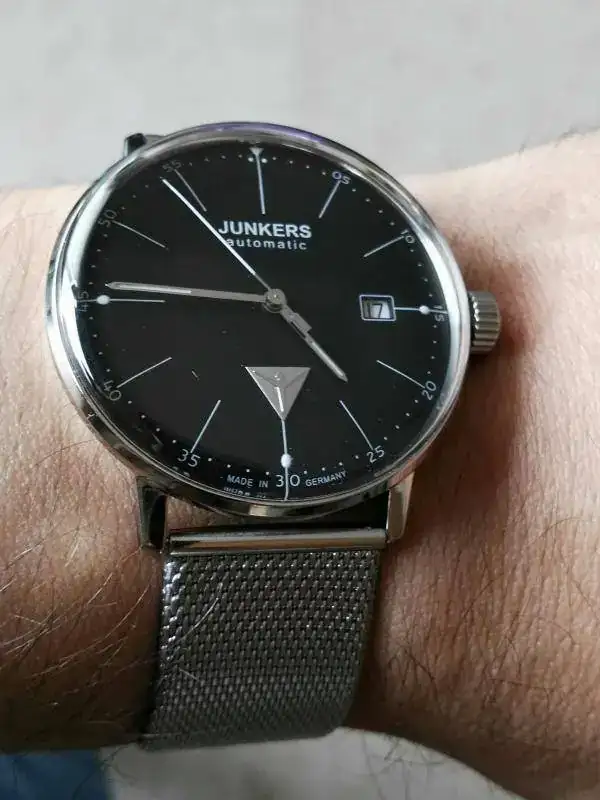 Se trata del Junkers 6050M-2 Bauhaus, versión automática con el archiconocido calibre ETA 2824-2 (existe otra versión similar en cuarzo).