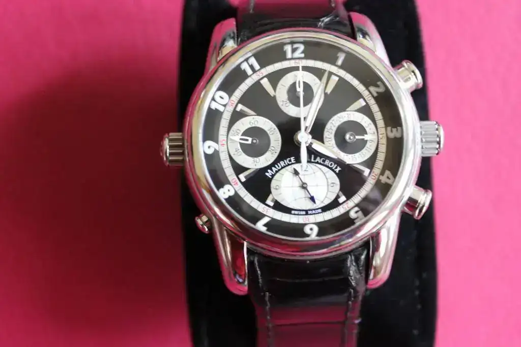 Maurice Lacroix Masterpiece GMT basicamente estos son mis relojes mecanicos y automaticos, falta alguno ejemplo un diver Seamaster 600 m por anadir pero esto es lo que uso mas. Luego vienen todos los cuarzos pero los uso poco. Tengo que decir que a parte del Porsche, los que mas visto son un Orient Bambino y un big date de Epos. Hala, coleccion presentada.Saludos a todos.