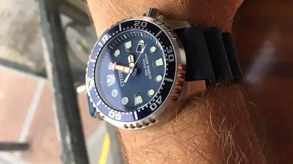 Os dejo una fotografía q acabo de hacer del último en entrar, un diver en toda regla, comodisimo y precioso, los azulitos me gustan mucho y este en particular me encanta, es solar y siendo citizen toda una garantía de calibre.