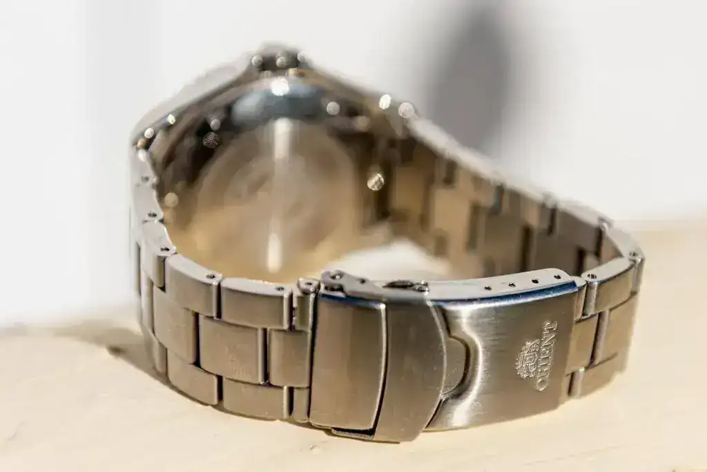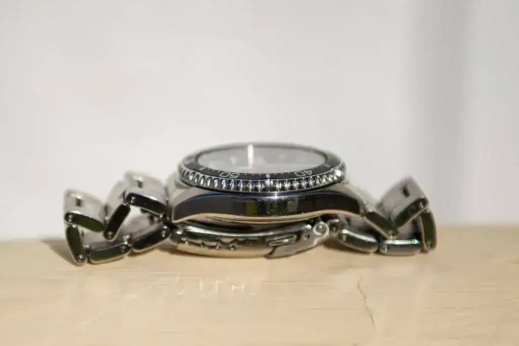 Pero, siendo honestos, no todo es bueno e ideal en este Kamasu. Hablamos de un reloj cuyo precio de tarifa es de 400€, y para esa gama de precios no se entienden ciertas cosas, como que el armis tipo oyster parezca un sonajero, con un cierre doble que deja bastante que desear y que, al menos en apariencia, no da una excesiva sensación de seguridad. Los endlinks son otro detalle a mejorar en futuras versiones, siendo éstos huecos. Lo dicho, detalles que están fuera de lugar para un reloj que se supone ha de venderse por 400€.