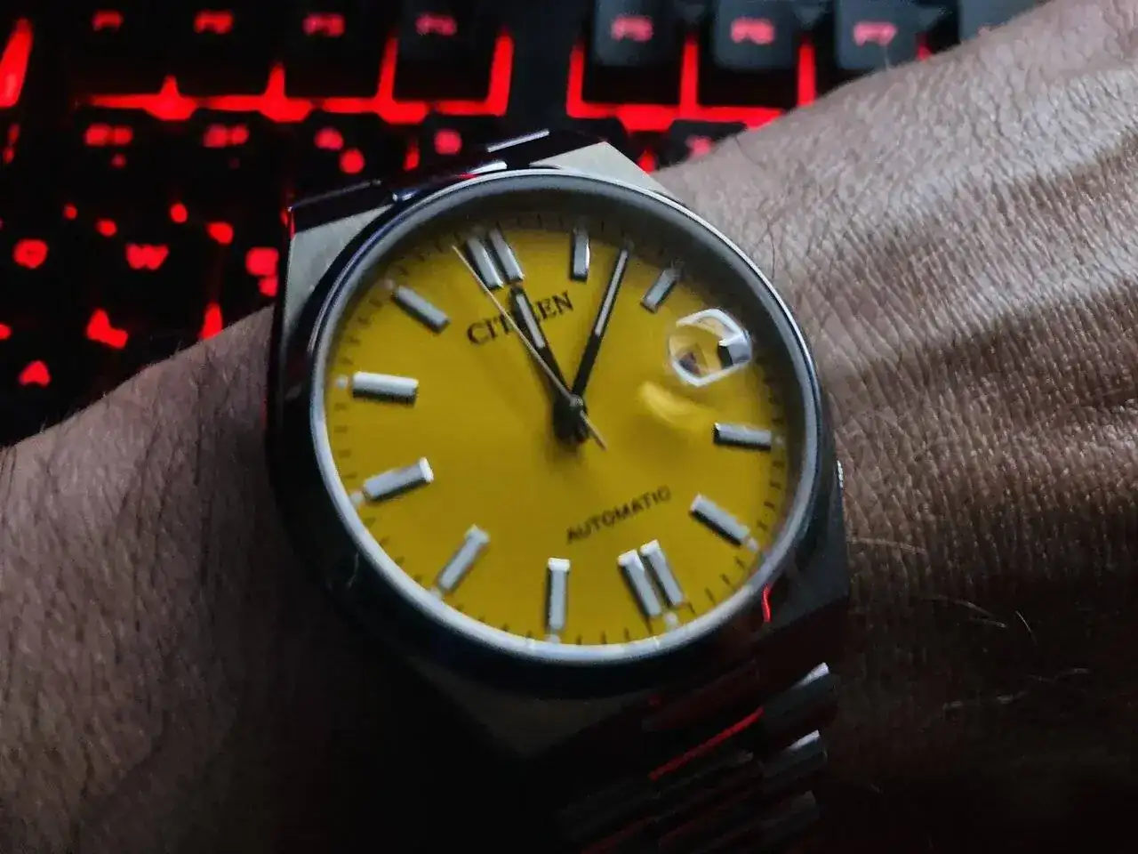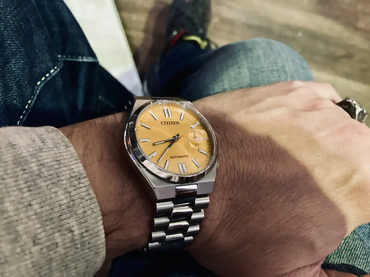 Tres años más tarde tengo que actualizar la presentación de mi caja, pues ha entrado el Pimpollo casi sin pedir permiso. Una CRI de caballo, provocada por un hilo del compañero @English87 pasando lista del modelo y rematada por El hilo de las ofertas donde aparecía y desaparecía como superoferta, al final me hizo caer sin remedio. En la muñeca es una gozada de bonito y cómodo, el Citizen Tsuyosa amarillo.