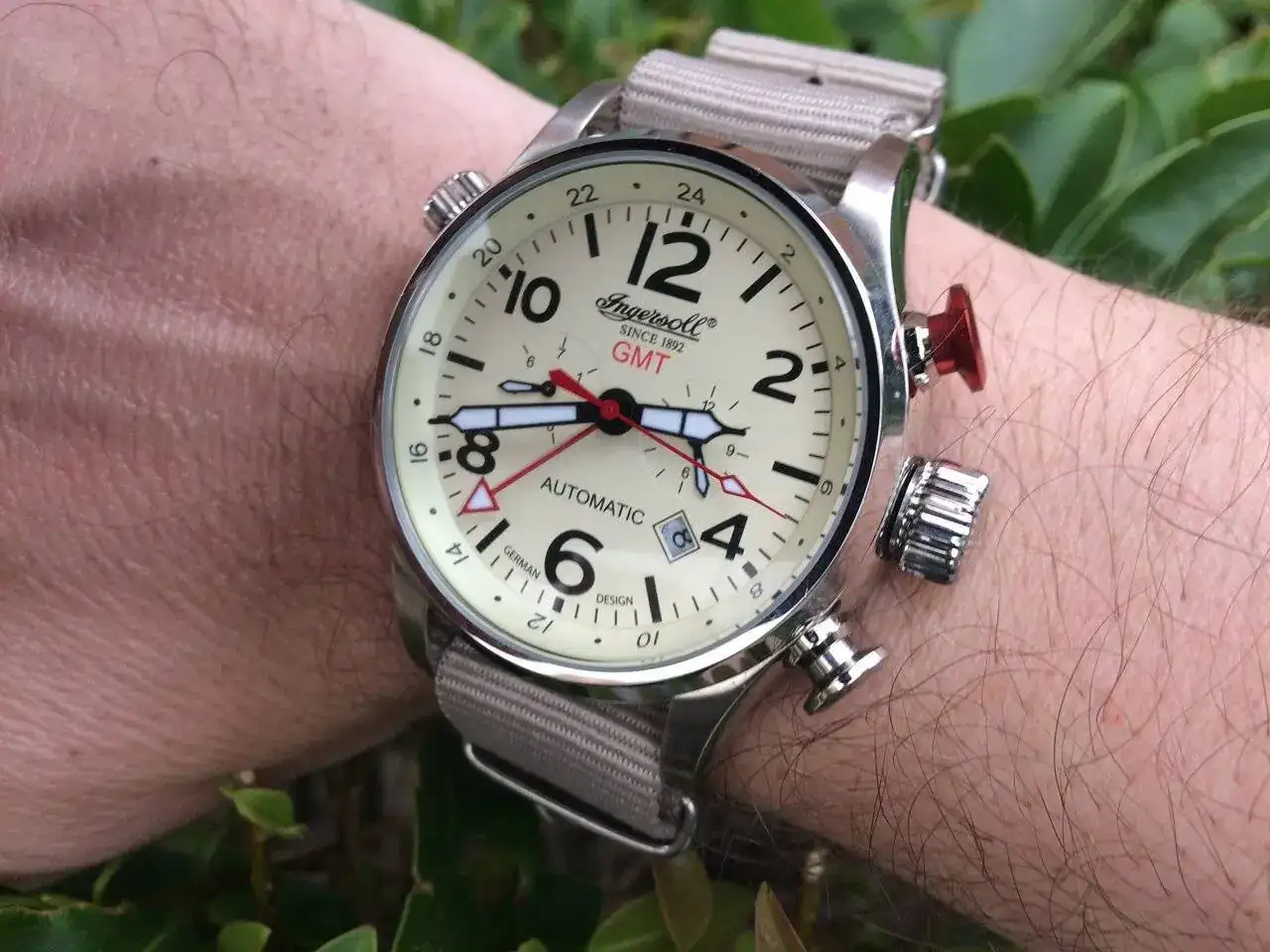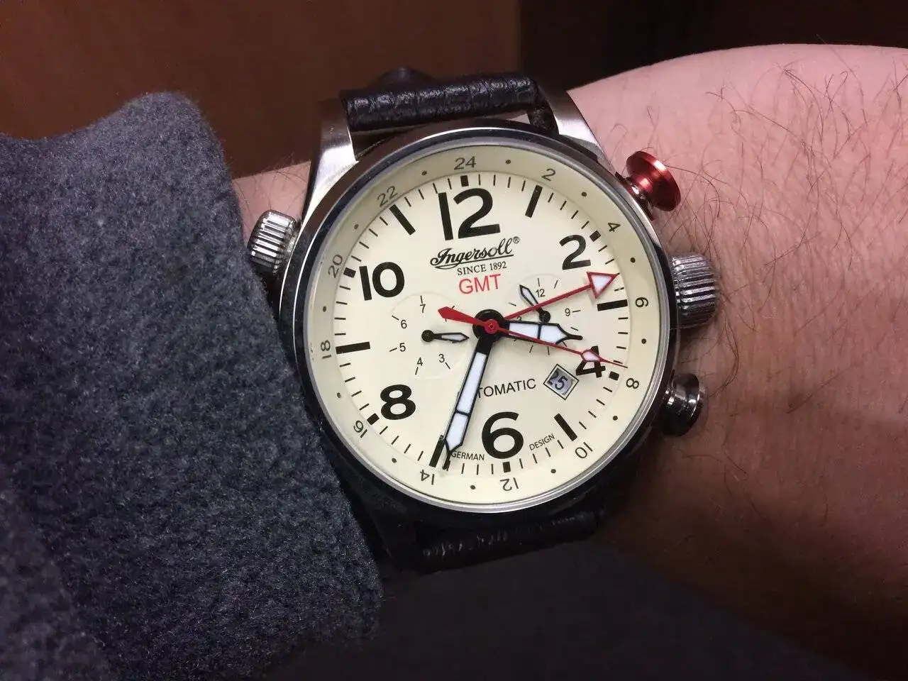 El siguiente en entrar hace unos años fue el Ingersoll Lawrence GMT, que me lo encontré por casualidad y me encantó. Siempre me han gustado los relojes grandotes, y más teniendo muñeca para llevarlos. Y aún sabiendo que el calibre que llevan éstas piezas suele ser muy básico, me arriesgué porque el precio era más que razonable. Ahora lo tengo en dique seco, porque algo en su corazón se ha estropeado. Mi relojero me ha pedido que se lo lleve. Lo haré cuando pase la cuarentena y que me diga si merece la pena arreglarlo. Una pena, porque luce precioso.