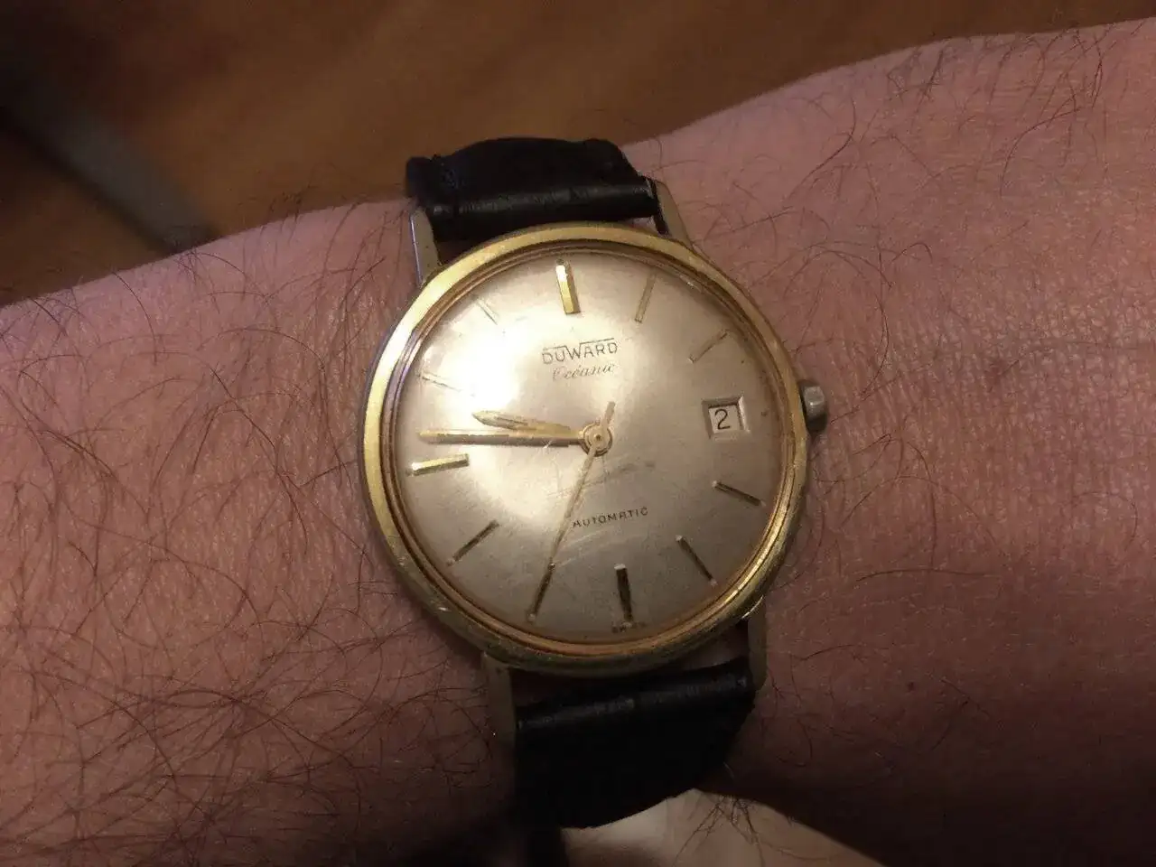Mi padre aunque no es un fanático de los relojes habla conmigo de ellos, sobre todo de los que me ve en la muñeca. Y un día apareció con un Duward Oceanic que pertenecía a mi abuelo en la mano. Lo tenía guardado, y pensaba que yo lo iba a cuidar mejor. Le puse una buena correa, y lo llevo conmigo de vez en cuando, con todo el orgullo!