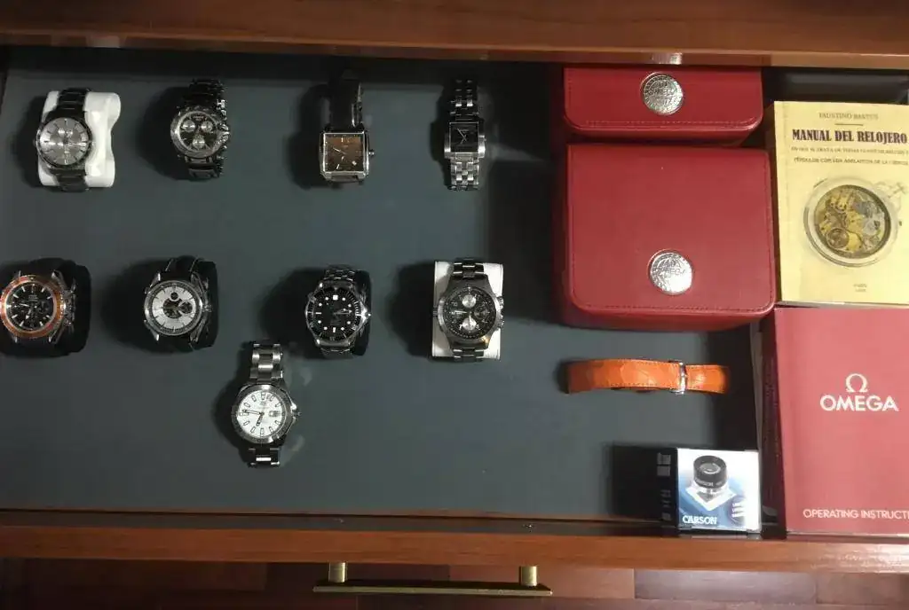 Los primeros en llegar fueron los 4 cuarzos, Tissot vestir, Tissot crono, Tissot con su punto vintage, Maurice Lacroix crono muy bonito. Con el impactante Hamilton llegaron los automáticos, hasta que no tienes un automático no sabes lo que es un reloj. El último en llegar fue hace 1 semana el Tag Aquaracer Cal. 5, blanco una maravilla. Que decir de mis Omega es pasión x ellos, NZL-32 A.T impresionante reloj “regata” de lo más bonito q he visto. Seamaster 300 M con las olitas en el dial precioso. PO un crono espectacular y el más €€€. En camino de la conjunta del foro; Longines HC cerámico azul armix.