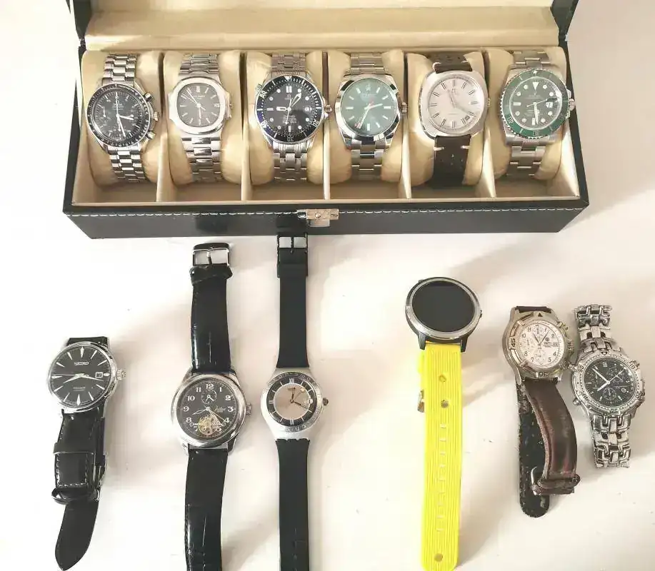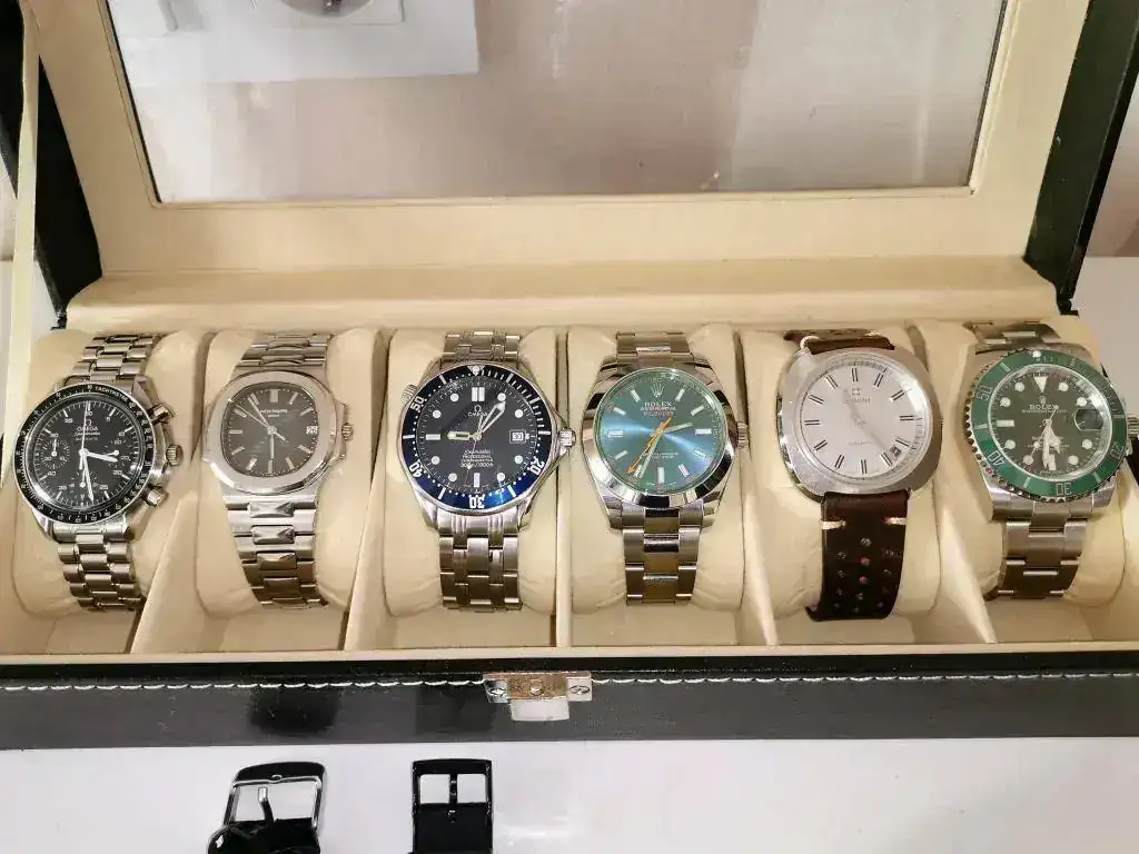 Fuera de la comodidad de la caja están el presage cocktail verde (aúnque en la foto no se aprecia bien su mágica esfera), un justina auto. del 97... Mi primer reloj automático.. Swatch y un par de quarzos de mi infancia..