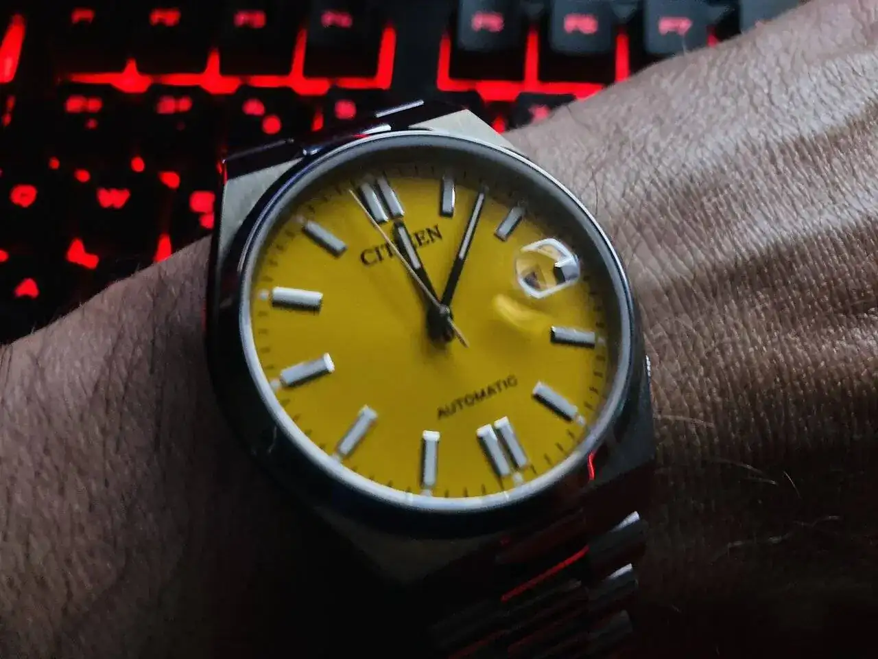 Tres años más tarde tengo que actualizar la presentación de mi caja, pues ha entrado el Pimpollo casi sin pedir permiso. Una CRI de caballo, provocada por un hilo del compañero @English87 pasando lista del modelo y rematada por El hilo de las ofertas donde aparecía y desaparecía como superoferta, al final me hizo caer sin remedio. En la muñeca es una gozada de bonito y cómodo, el Citizen Tsuyosa amarillo.