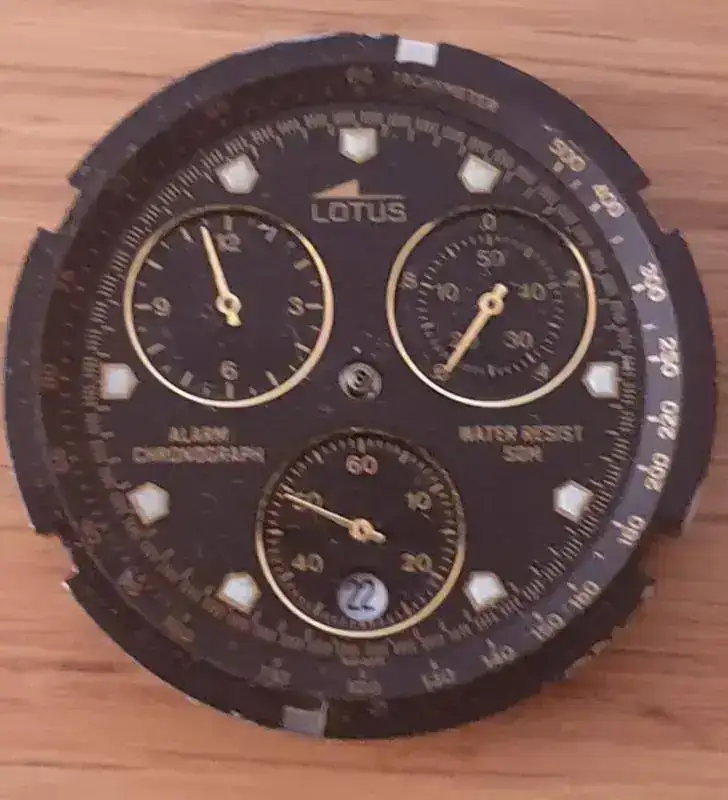 A los 18-19 anos mi hermano me regalo un lotus cronografo de cuarzo guapisimo, ese es el reloj que mas he usado alternando con algun casio digital. Al Lotus le entro agua por los pulsadores y logramos rescartarlo en el relojero del barrio, años mas tarde le entro agua una segunda vez y sus palabras fueron que no habia arreglo o que no valia la pena.