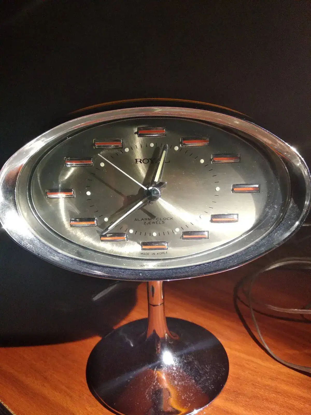 Se trata de un Samsung Royal de los años 60 que mis abuelos compraron en un viaje a Ceuta. Funciona perfectamente, el único problema es que se le ha perdido el botón de activar y desactivar la alarma. En cuanto vuelva a Madrid el reloj va a ir a mi relojero de confianza a que lo ponga a punto y ver si puede apañar el botón que falta.