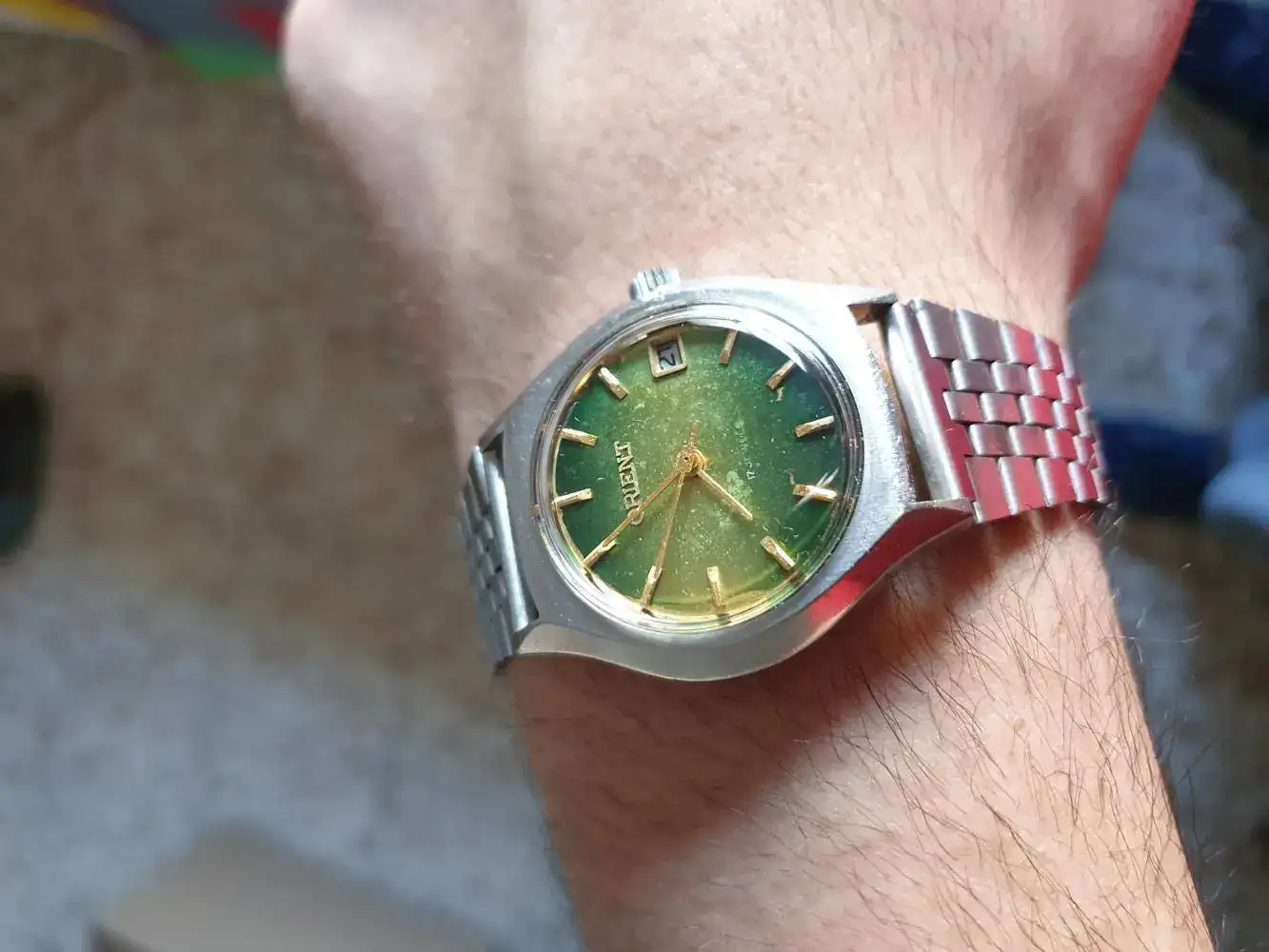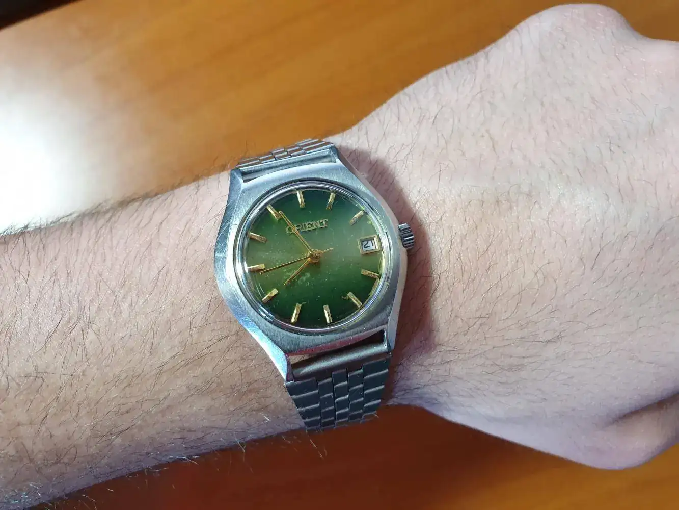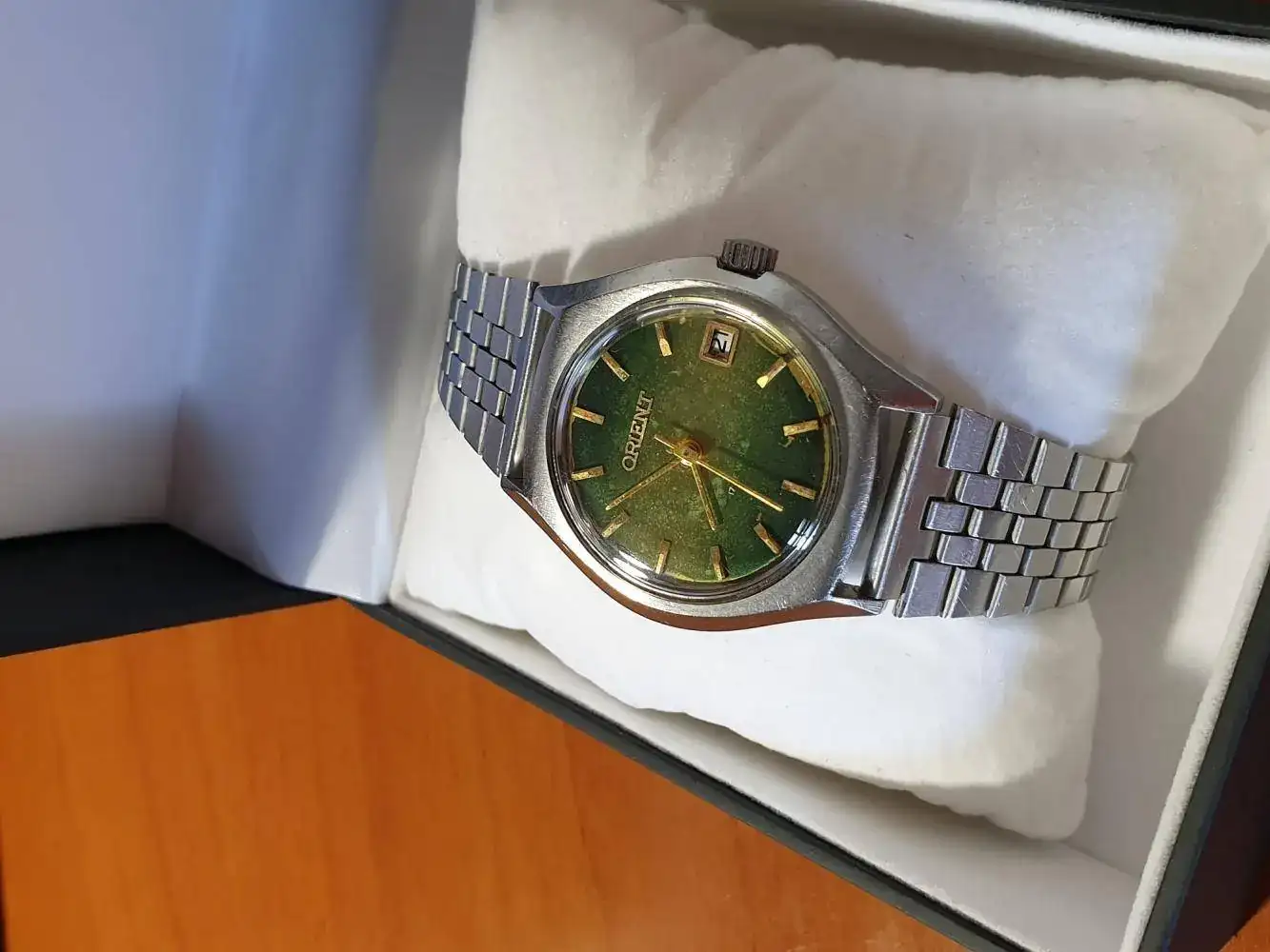Hace unos meses (antes de la cuarentena), mi madre me dio dos relojes que tenía en un cajón: uno de ellos ya lo enseñé brevemente en este hilo (un Technos que ahora he dejado en el relojero) y el otro era este Orient que, al parecer, era de mi padre. Él no recuerda fechas de compra, yo calculo que es de los años 70-80, aunque quizá vosotros lo sepáis mejor.