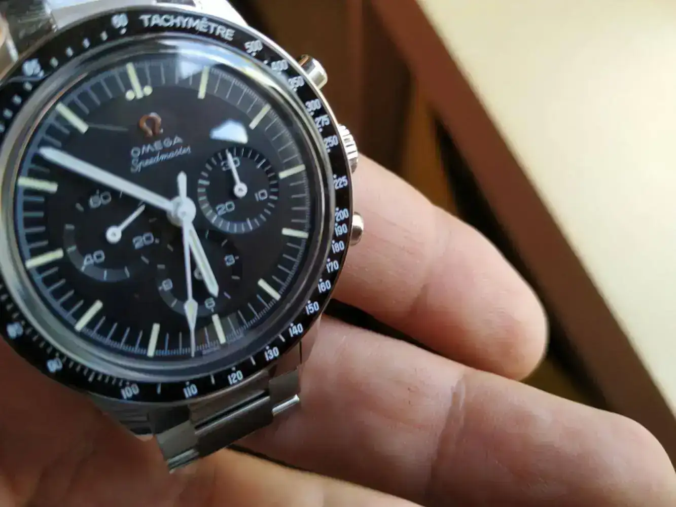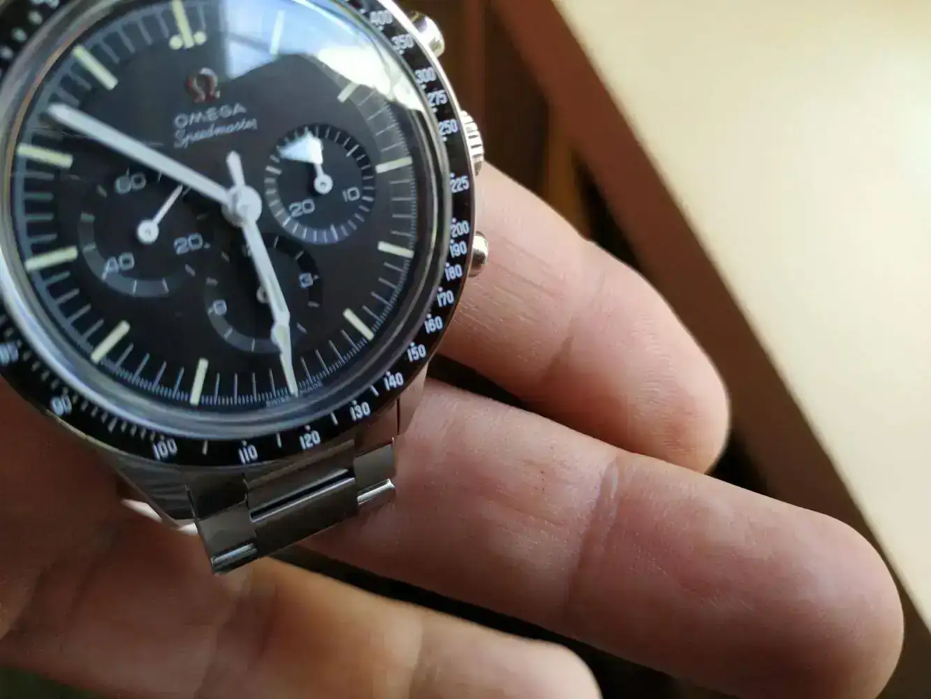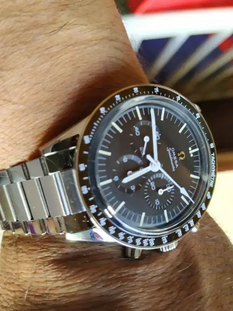 Resumo, Omega Speedmaster con calibre 321 acero. Cuerda manual, bisel cerámico, armis especial y la reedición del calibre que estuvo en la luna montado a mano por un solo relojero de Omega.