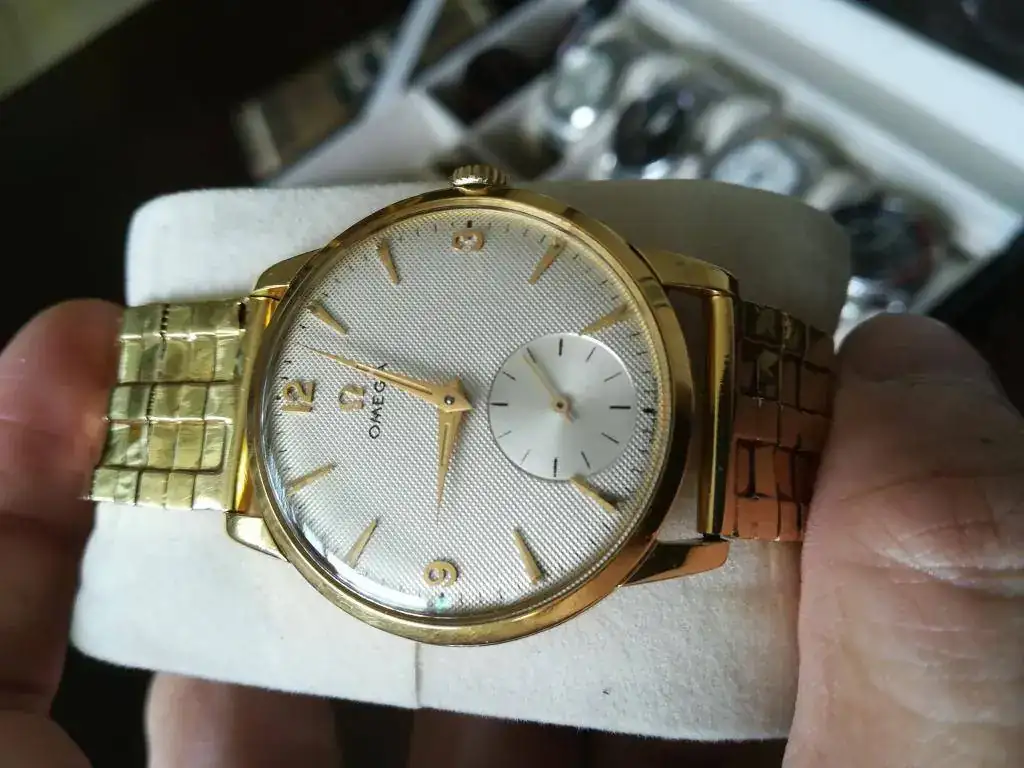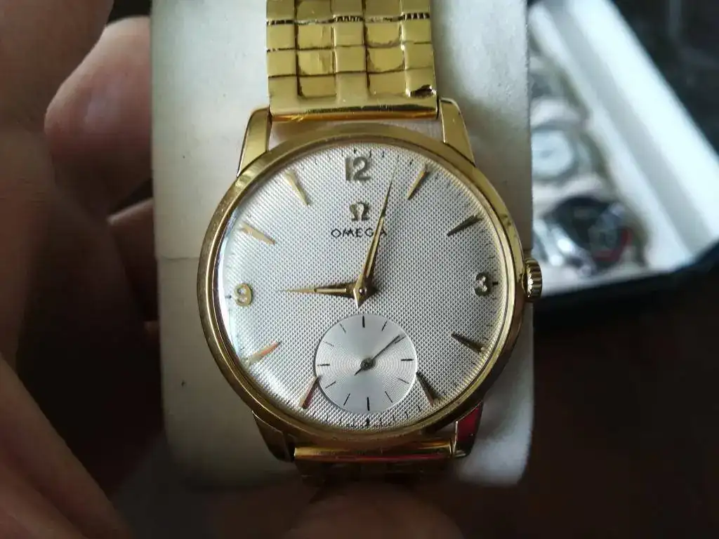 Este Omega, la joya de la corona, debe tener no menos de 70 años funcionando. Mi bisabuelo se lo regaló a mi abuelo y éste se lo usó por décadas hasta que se lo dió a mí papá. Un reloj precioso, muy sentimental y atemporal.