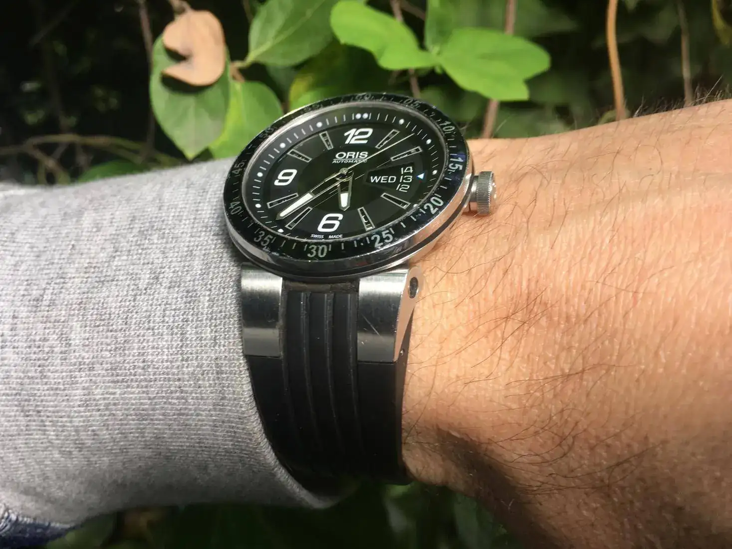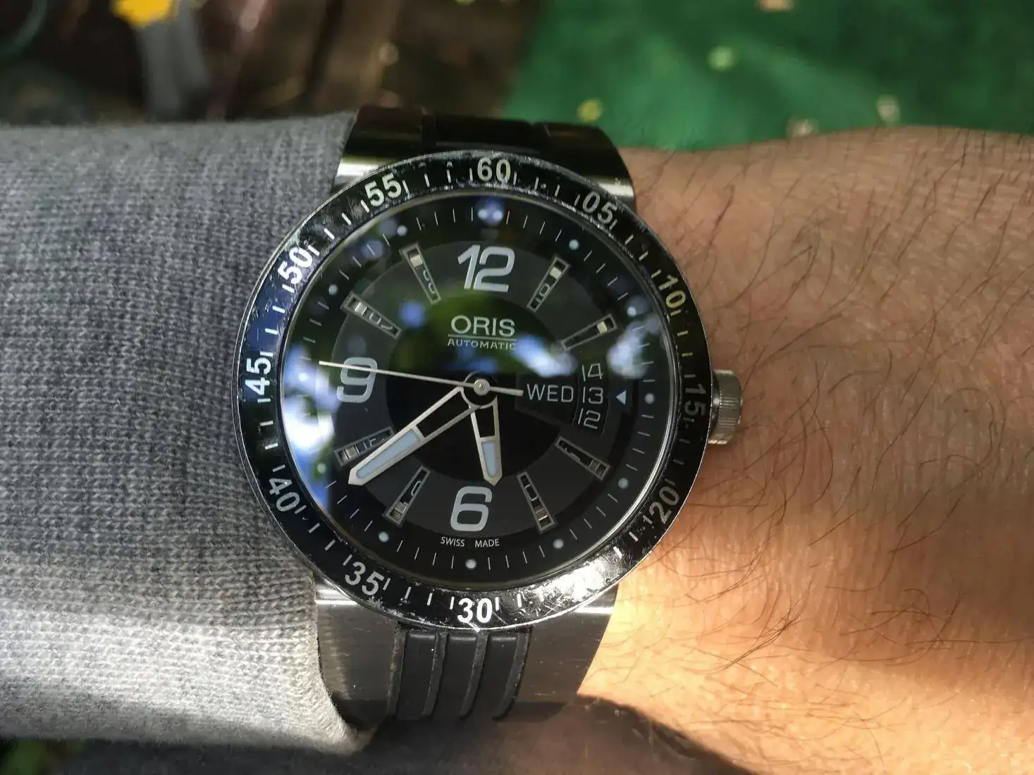El reloj es un Oris Team F1 Williams day date , al principio no me encantó y encima tuve un problema con el , o eso creía , me daba cuenta que aveces adelantaba como media hora o más según le fuera ..