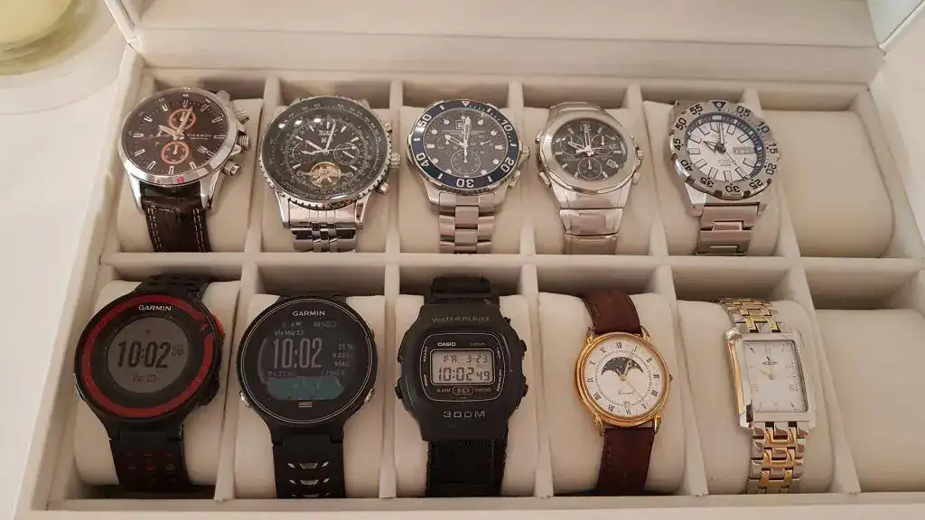 En su día me compré la caja que muestro con la idea de que 12 fuera mi límite de relojes. Me gusta disfrutar de todos ellos y me los pongo según la ocasión y la vestimenta que lleve (siempre a juego).