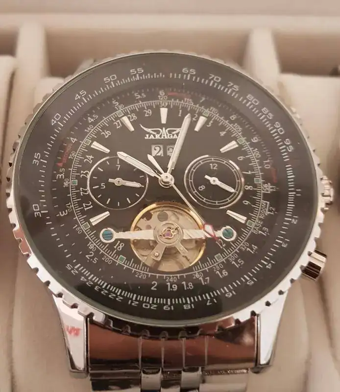 El resto de amores tienen también sus historias pero no quiero alargarme mucho mas. Eso si, aunque parezca un sacrilegio, si me gustaría mostrar también a mi JARAGAR. Lo cierto es que lo compré porque me encantaba ver ese volante y pensando que me duraría un par de meses y luego podría destriparlo para "cotillear" un automático, por dentro en vivo. Pero va camino de los 3 años y sigue funcionando bien, por lo que el muy c....se ha hecho un hueco en mi corazón también.