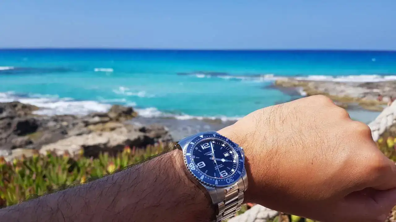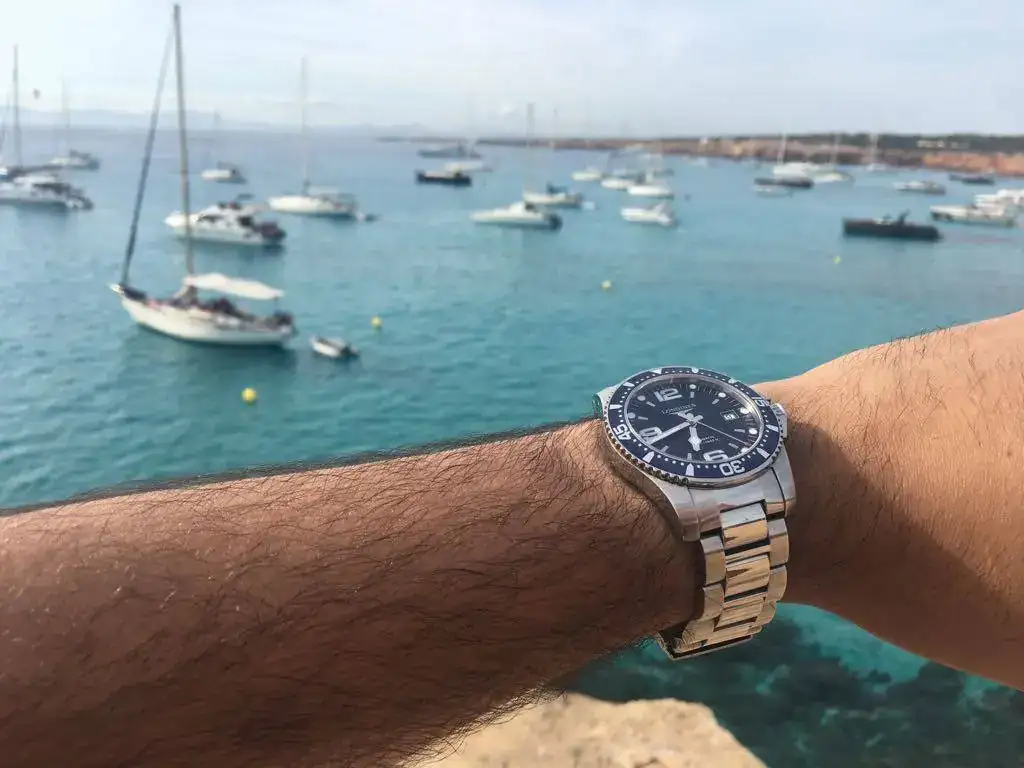 El siguiente es otro muy visto por estos lares: el Longines Hydroconquest. Este reloj fue muy especial para mí, ya que me lo autoregalé al acabar la carrera. Tras la experiencia previa, tenía claro que los divers eran los relojes más polivalentes, sobre todo aquellos que tienen un diseño más elegante y no tan herramienta. Dentro de lo que el mercado de los suizos ofrecía en aquel momento, el Hydro me pareció la elección perfecta. Así que cuando vi uno a buen precio en el foro, no me lo pensé. Me hizo muchísima ilusión cuando lo recibí. Ha sido el reloj que más me he puesto durante casi 10 años, mi preferido. Me acompañaba al trabajo, los fines de semana, viajes y si no tenía a mano algún seiko y había que tirarse al agua, se mojaba sin problemas.