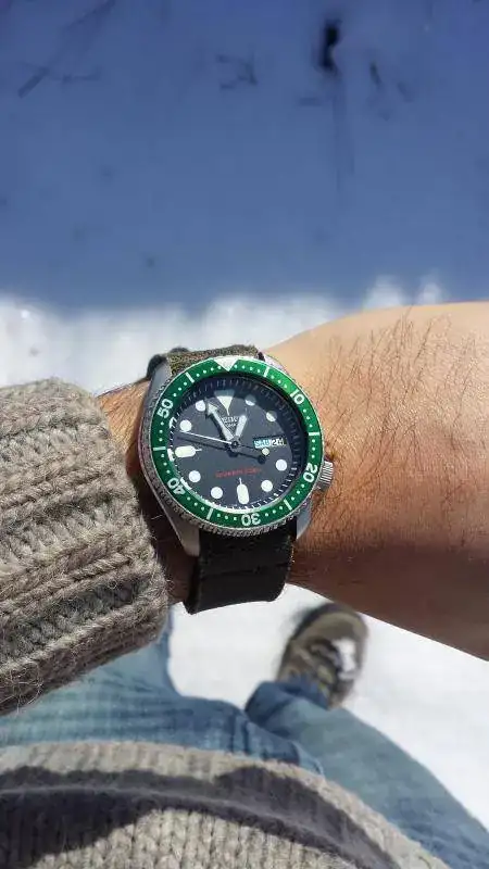 El primero, es el archiconocido Seiko SKX 009, que fue mi primer reloj automático comprado a un mercante hace más de diez años y regalo de mi madre al cumplir 20 años. Este seiko me enganchó definitivamente al foro, pues fue en esta casa donde muchos me recomendasteis este gran reloj para empezar. Me quedaba hipnotizado mirando el segundero moverse de forma continua a diferencia del resto de cuarzos generalistas que habían sido mis relojes anteriores. Era un reloj de verdad…a pesar de su brazalete.