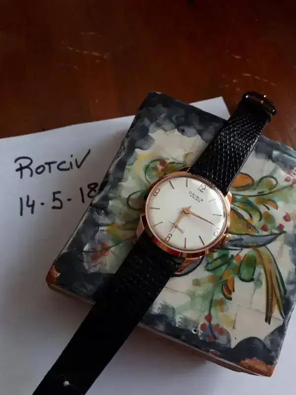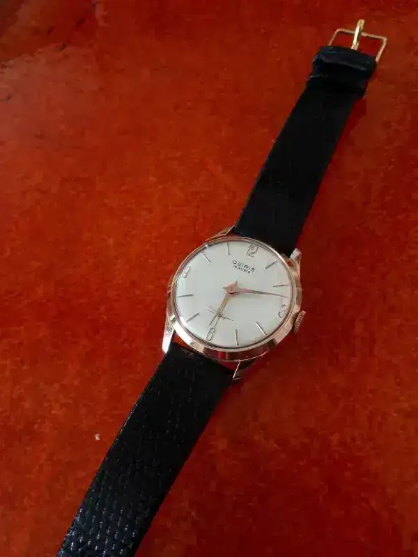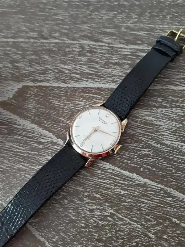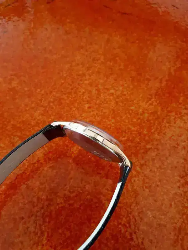 Es un reloj elegante, de calibre manual y segundero pequeño. Tiene un plexi con bombé IMPOLUTO y una correa de caimán nueva. Se entrega también la correa y la hebilla originales, aunque el conjunto resalta mucho más con la correa que le he puesto.