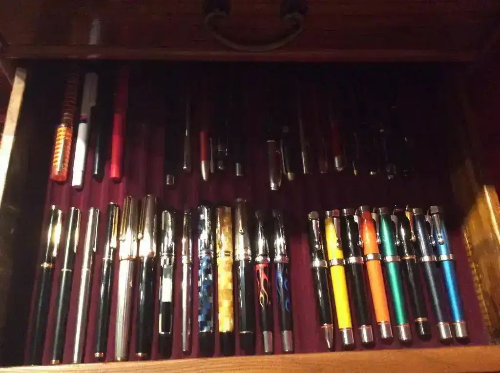 Yo para hacer las mías ( también siguiendo experiencias y consejos narrados por foreros) he empleado la técnica del plegado de cartulina ( doble) y cubierta de tela tipo terciopelo ajustando el corte para que una vez colocas la pluma queda todo en su sitio. El inconveniente es que ocupa más espacio y caben menos piezas. Es más simple aún que tu sistema. Pero vale sólo para cajas de una sola bandeja. En cuanto pueda pongo alguna foto.