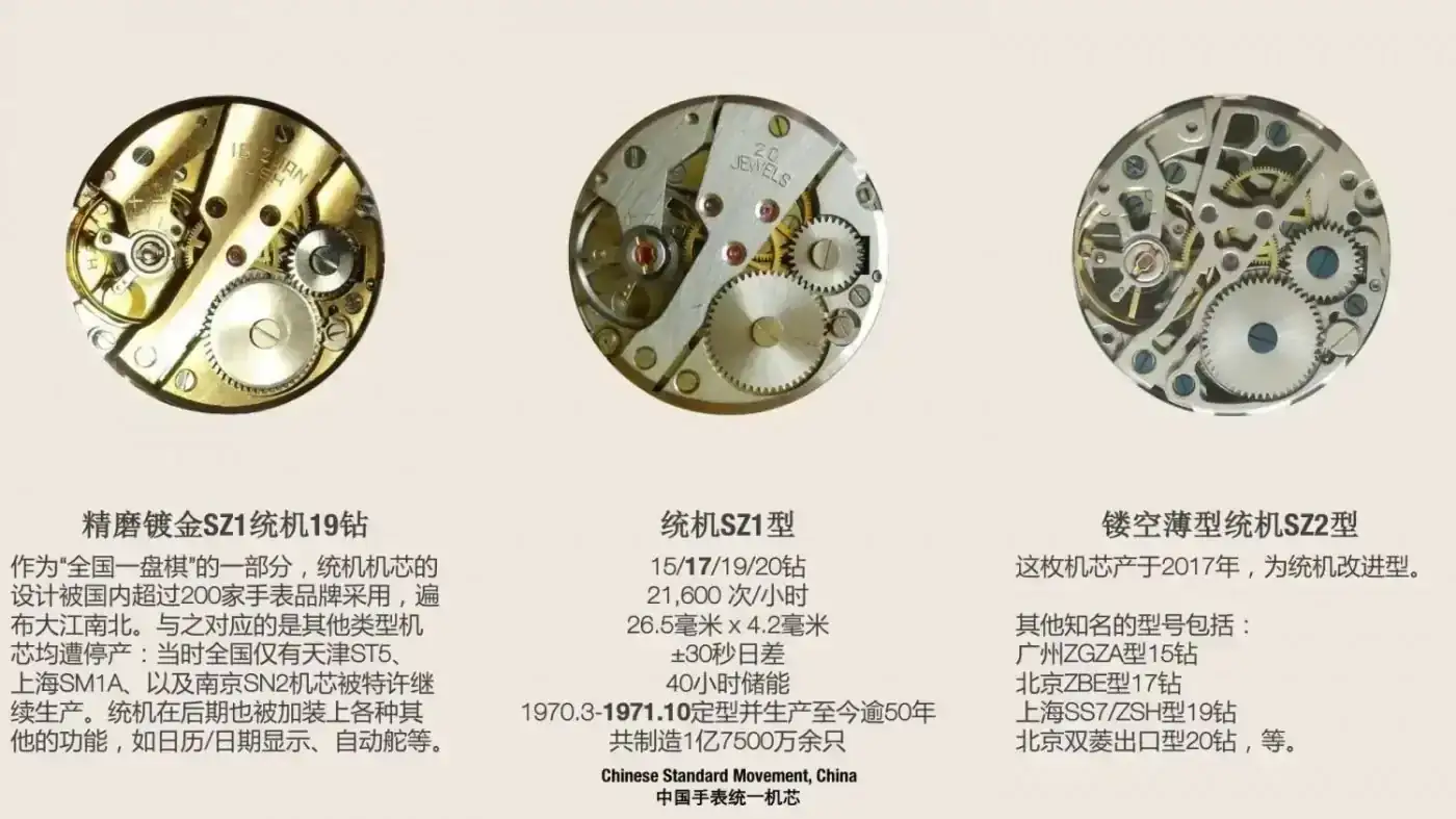 En 1971, el movimiento unificado SZ1 observa el movimiento unificado. El movimiento unificado se puso en producción de prueba en 1971. En 1972, el Ministerio de Industria Ligera promovió oficialmente el movimiento SZ1 a todo el país. Después de 1975, la gran mayoría de la fábrica nacional de relojes adoptó la máquina unificada, la producción nacional de relojes de 1.344 en 1967, 6.564 millones en 1974, a 33.301 en 1982, para hacer contribuciones sobresalientes a la popularización de las "tres piezas principales". En la década de 1980, la producción de relojes superó más del 80% de la producción total de relojes en el país.