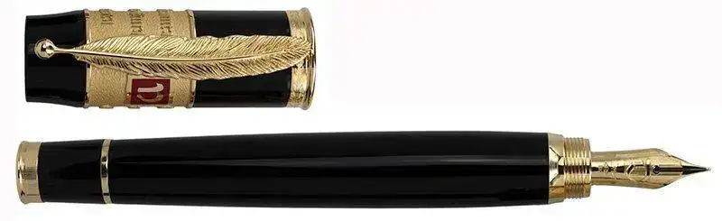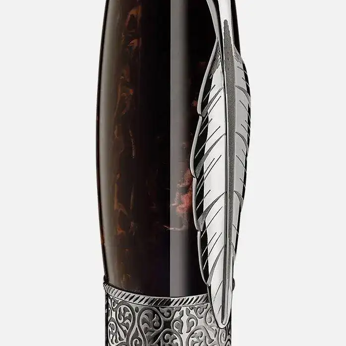 La Omas Dante es negra con dorado, el clip tiene forma de pluma, lleva el retrato de Dante en la cima del capuchón y los tres primeros versos de la Divina Comedia grabados: más obvia, imposible.