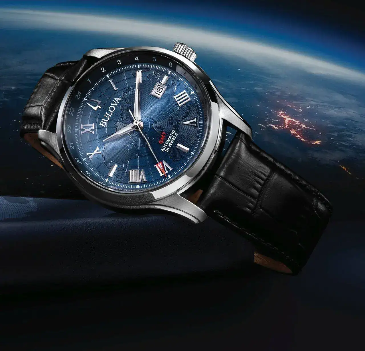 Esta vez es un GMT , movimiento automático Miyota calibre 9075 con 24 rubíes, 28.800 vph y una reserva de marcha de 42 horas. El 9075 es un movimiento GMT de 4 manecillas, el primero de Miyota. Las funciones son: horas, minutos, segundos centrales, fecha y complicación del segundo huso horario.