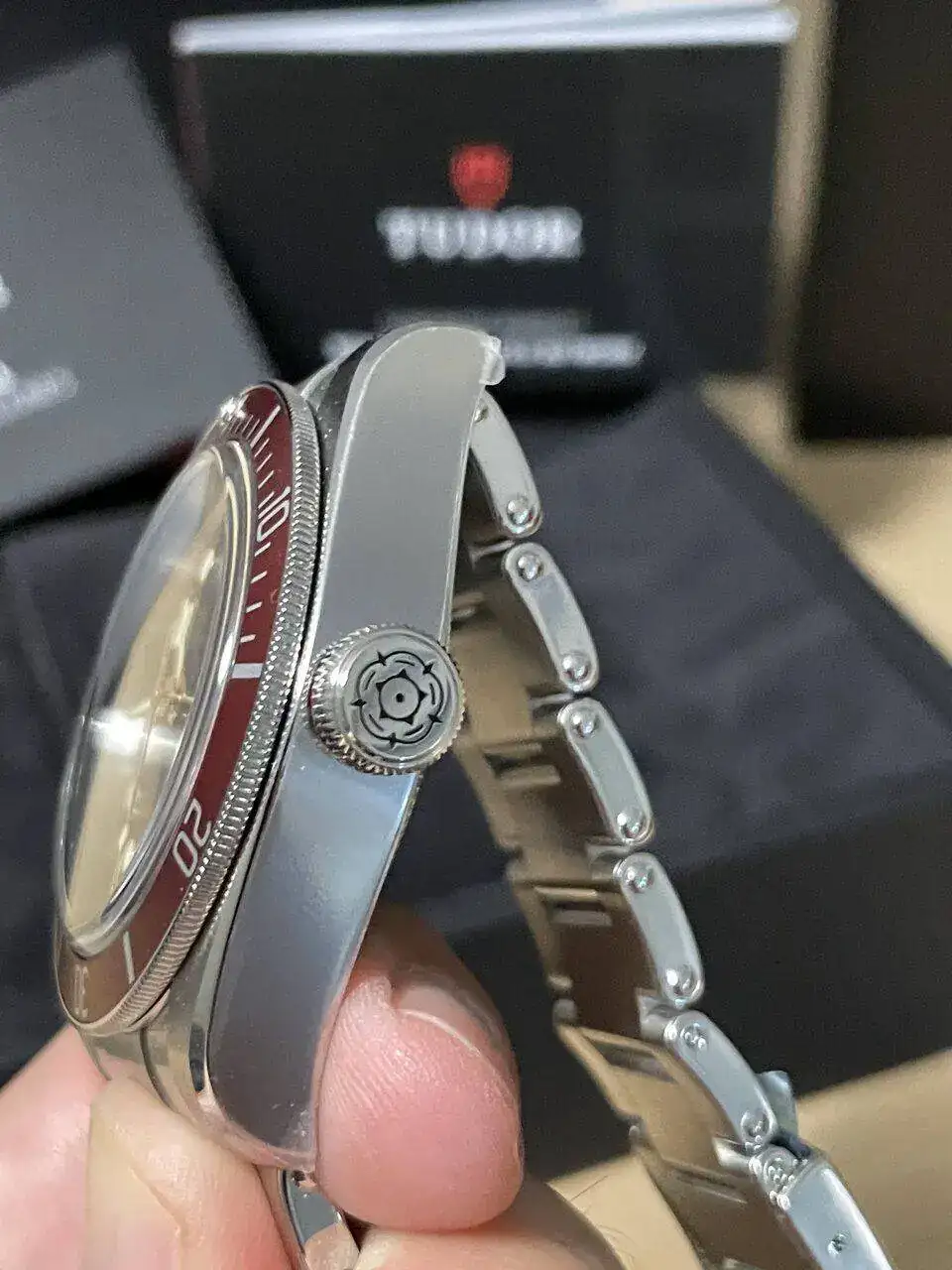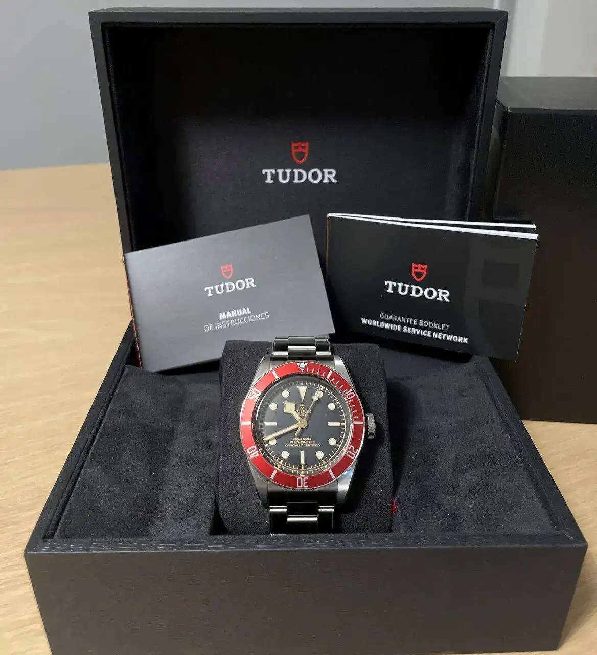 pues por fin, después de muchos años viéndolo a través de un escaparate, y con motivo de mi cumpleaños, tengo mi Black Bay Burdeos. Como os comenté tenía muchas dudas con que modelo coger ( ver post: https://relojes-especiales.com/threads/el-eterno-dilema.550285/ ). Pero al final, y después de leer todos vuestros comentarios, me deje llevar por el que me cautivo ya hace muchos años. He de decir que no pude probarme el 58, no lo tenían, pero si me probé el negro, y al final me decanté por el burdeos. Me parece un color de bisel precioso que, aunque no es tan ponible, es muy icónico y representa perfectamente a la marca y al modelo Black Bay. En cuanto al reloj, que decir, derrocha calidad por todos sus poros. Lo primero que me impresionó bastante fue su peso y la contundencia de la caja. En mano mejora muchísimo, y pese a ser un reloj contemporáneo, ese estilo vintage con el bisel de aluminio y los detalles en dorado le dan un toque muy especial. Cierto es, ya lo habéis remarcado en mas de una ocasión, que es un reloj de perfil alto, pero una vez puesto, es cómodo y para mi personalmente, no ha sido un problema. Y que más decir de un reloj que ya todos conocéis de sobra y con tan buena acogida en el foro, pues que estoy contentísimo con el.