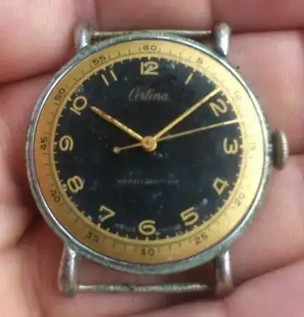 Pues en esta mañana lluviosa (que raro eh?), me topé con un reloj que a primera vista no decía mucho el pobre, un plexi amarillento y rayado ocultaba su marca y mi cada vez peor vista me impedia ver de cerca, al compañero Ayuc se le olvidó la lupa y la navaja y solo pude intuir la marca que se escondia bajo el plexi. Como podeis adivinar por el título del hilo, una vez abierto la tapa me encontré con un conocido calibre KF324B, y ya cuando llegué a casa y quité el plexi me encontré con una bonita esfera, ajada, pero aún bonita, con la elegante y antigua tipografía con el nombre de Certina. El reloj parece ser de los años cincuenta, pasadores fijos y una caja cromada al contrario que su tapa que es de acero inoxidable. Ya tenía otro calibre 324 pero en este caso le acompaña la letra B, no se cual será la diferencia de uno a otro ya que ambos llevan 16 rubis, obviamente tendrá que pasar por el relojero pero estoy muy contento con este hallazgo. Aquí os dejo unas fotos, espero que os guste. un saludo a todos!