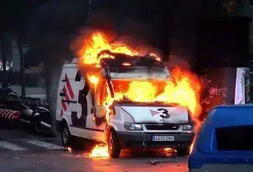 El otro día, los antisistema quemaron una unidad móvil de TV3. Por suerte, alguien les dijo a los dos compañeros que estaban dentro que saliesen. Si no, se frien.