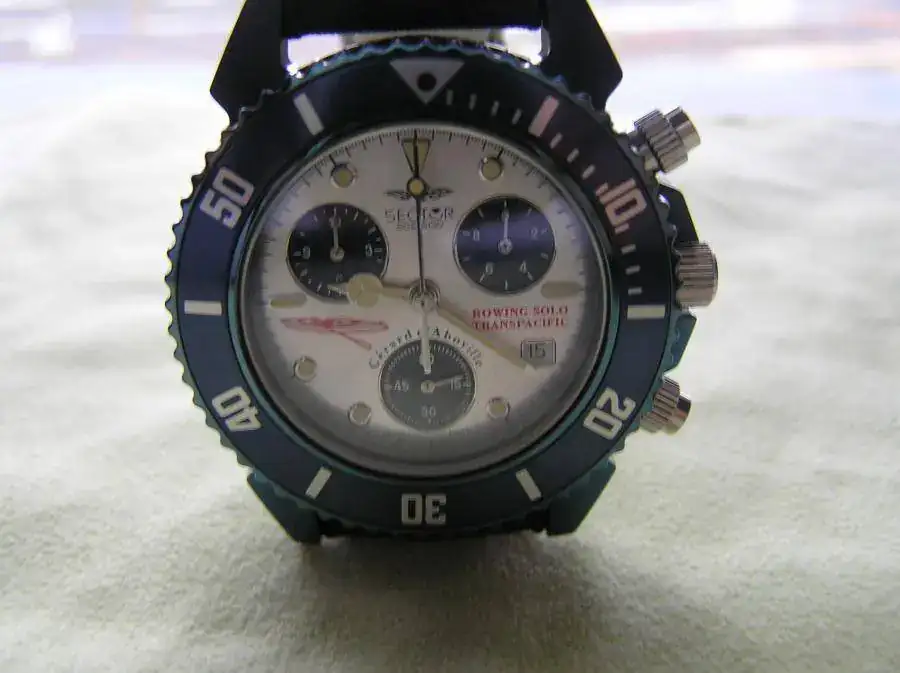 Yo tengo la edicion limitada "Ernest DÁbouville rowing solo transpacific".En acero azul.Impresionante. Como esta envejeciendo de bien.Va para el cuarto de siglo.