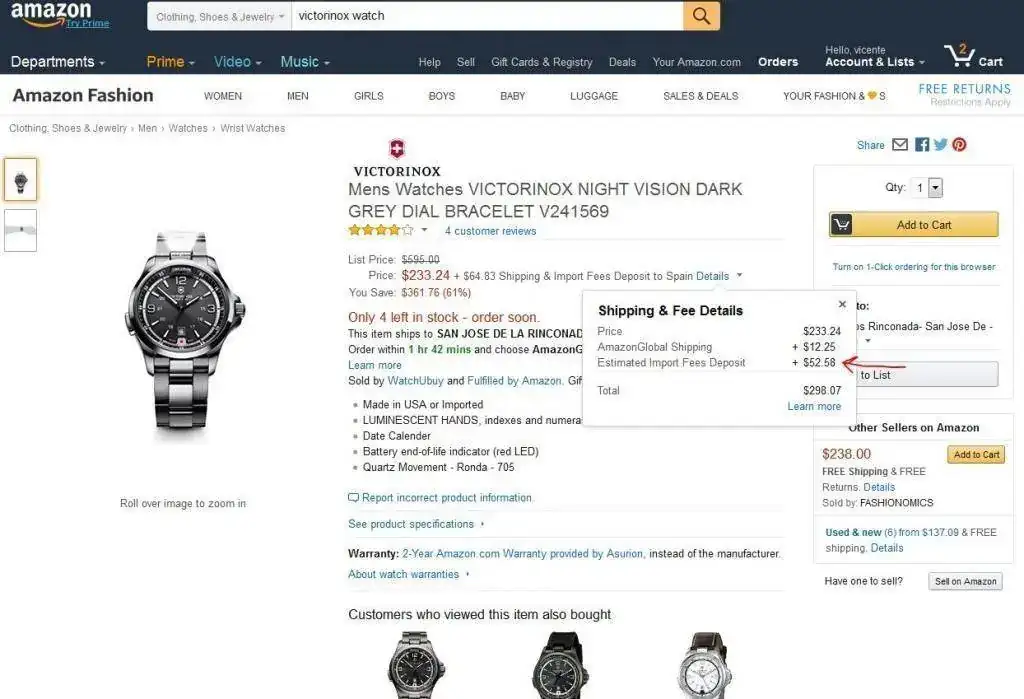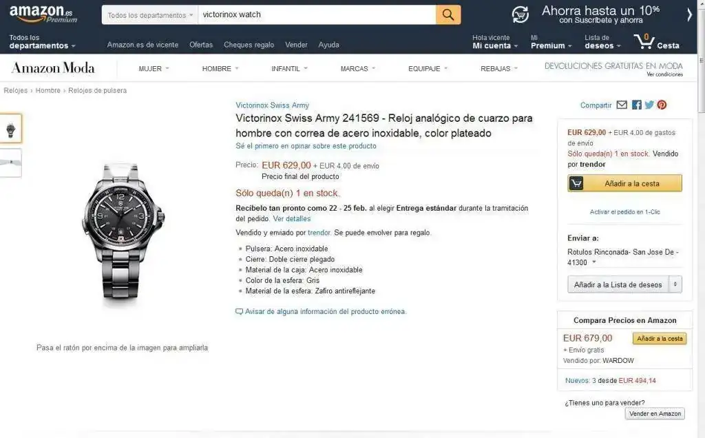 No voy a volver a entrar en la página de Amazon USA, realmente tienen precios muy desconcertantes en los relojes Victorinox.