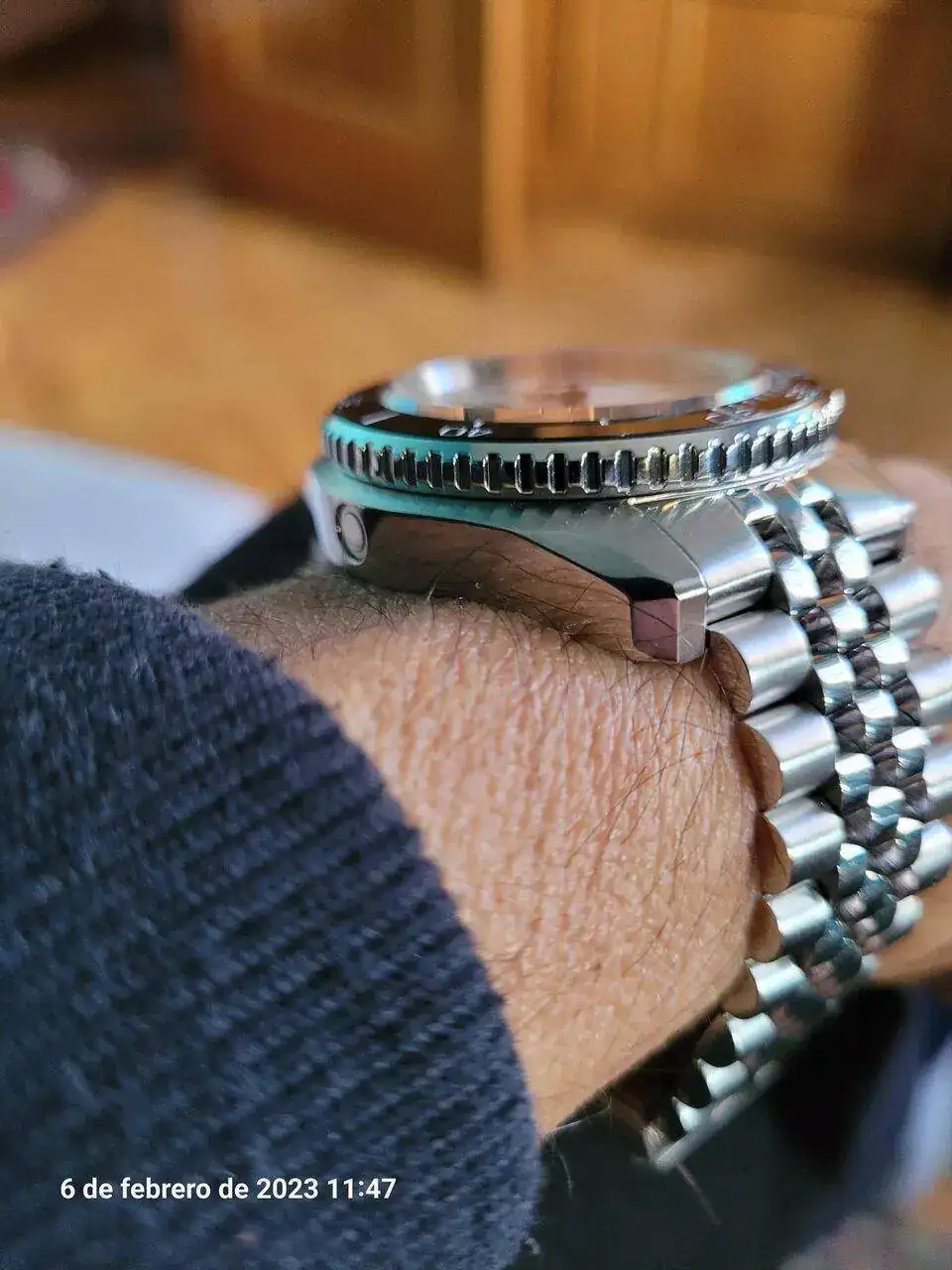 El bisel, que muchos querian que fuera de aluminio para respetar el original... nada, es espectacular, yo no lo cambiaría. Me encanta el detalle de la escala de 30 minutos y la flecha en el cero.