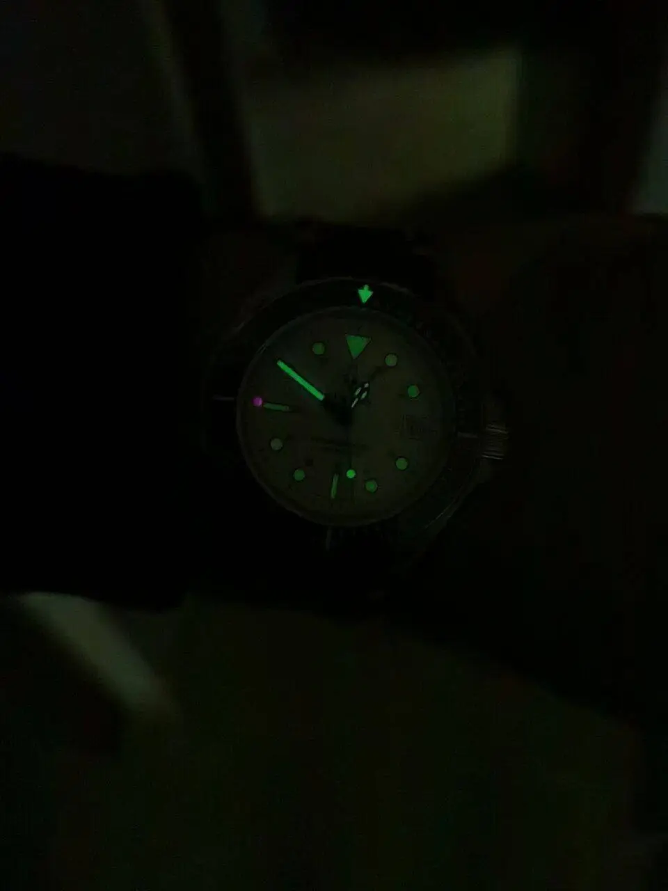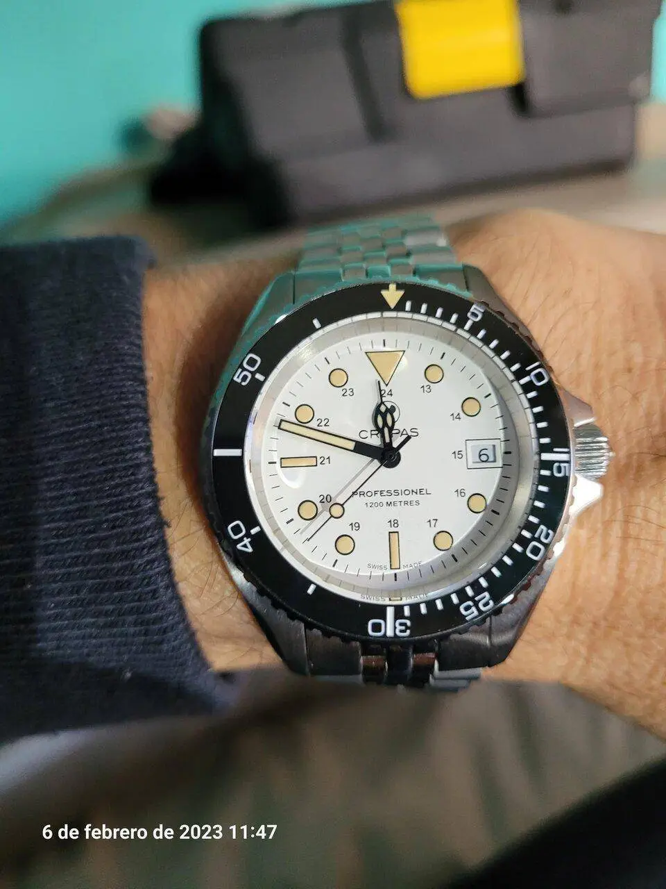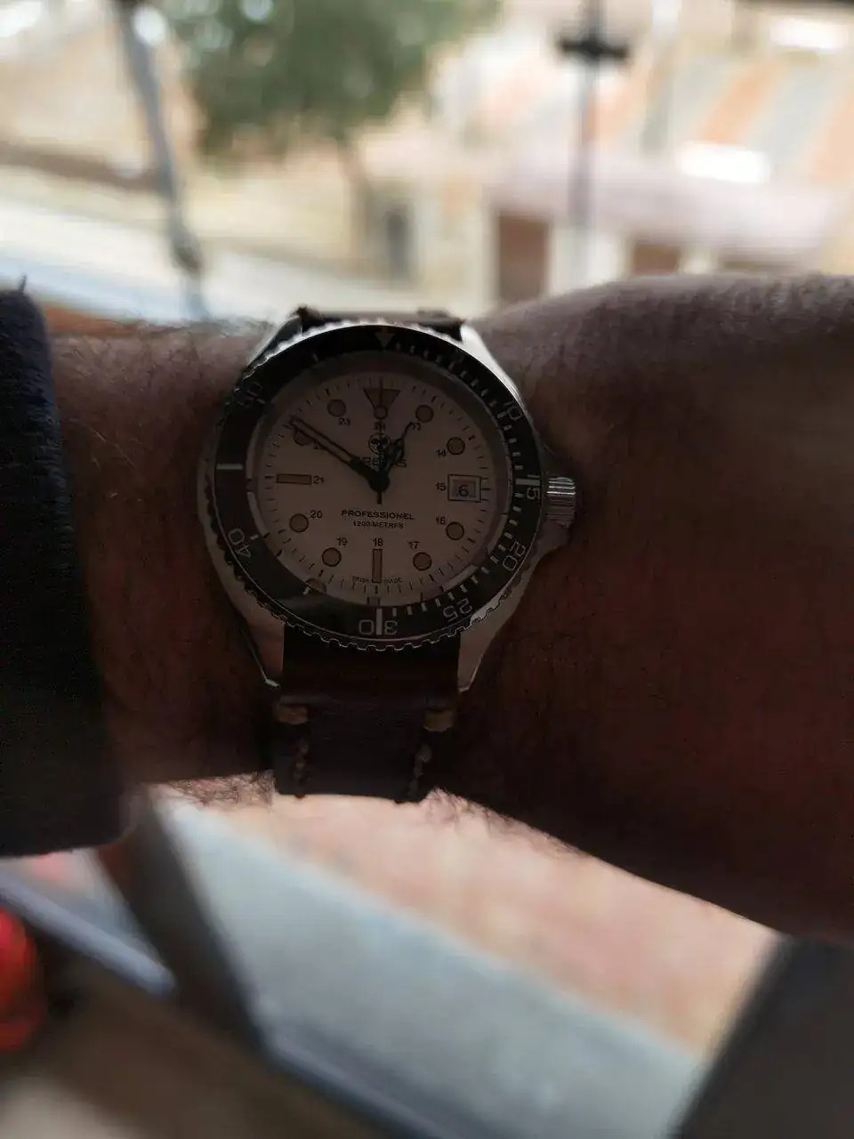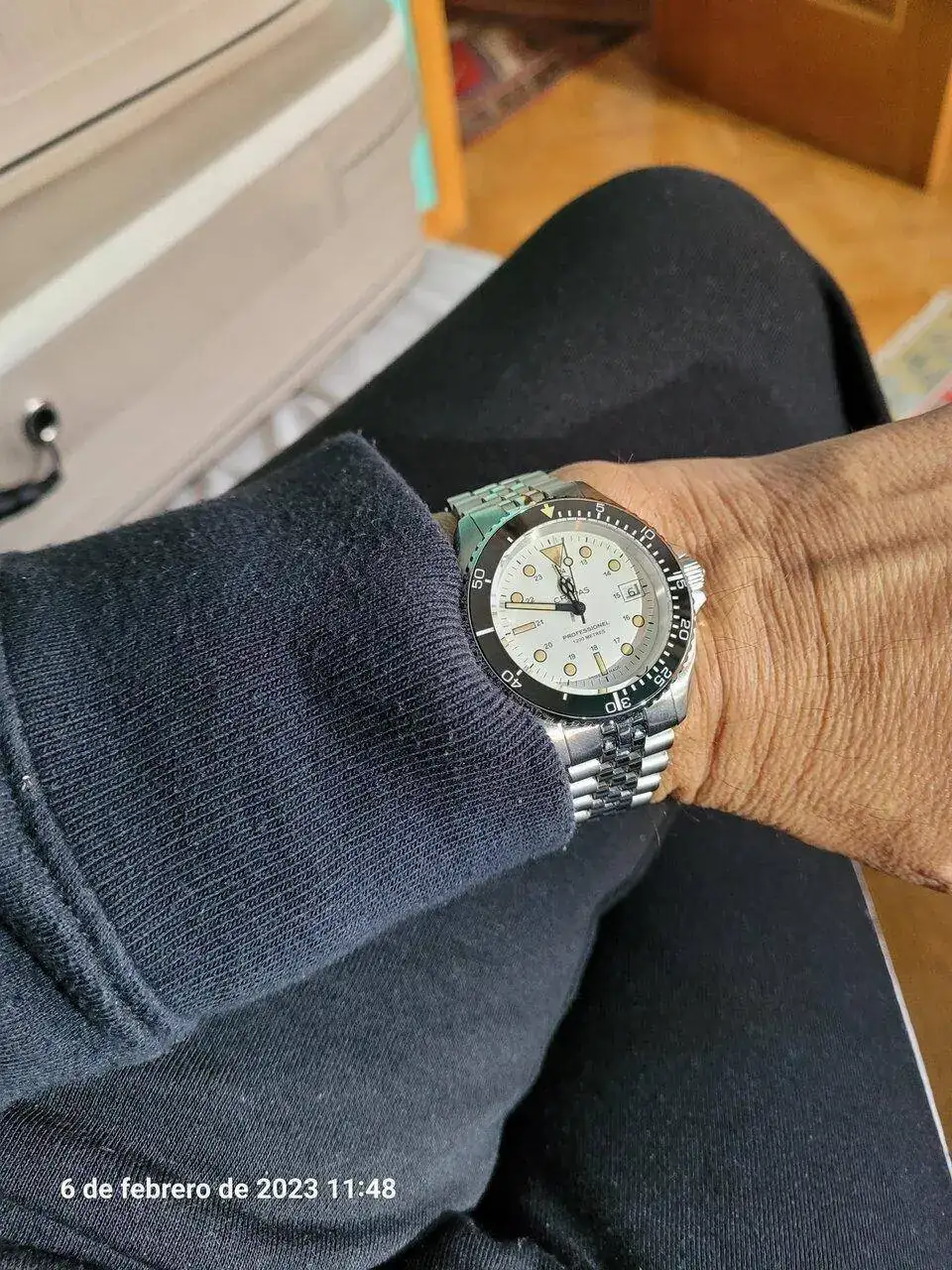Pues estoy convencido ya al 100% (cuando lo pides es imposible) de que el blanquito es la estrella de este modelo. Lo pedí además por ese motivo, quería un diver blanco, y no decepciona, el dial es espectacular. Y la combinación con el caucho, o silicona, es espectacular.