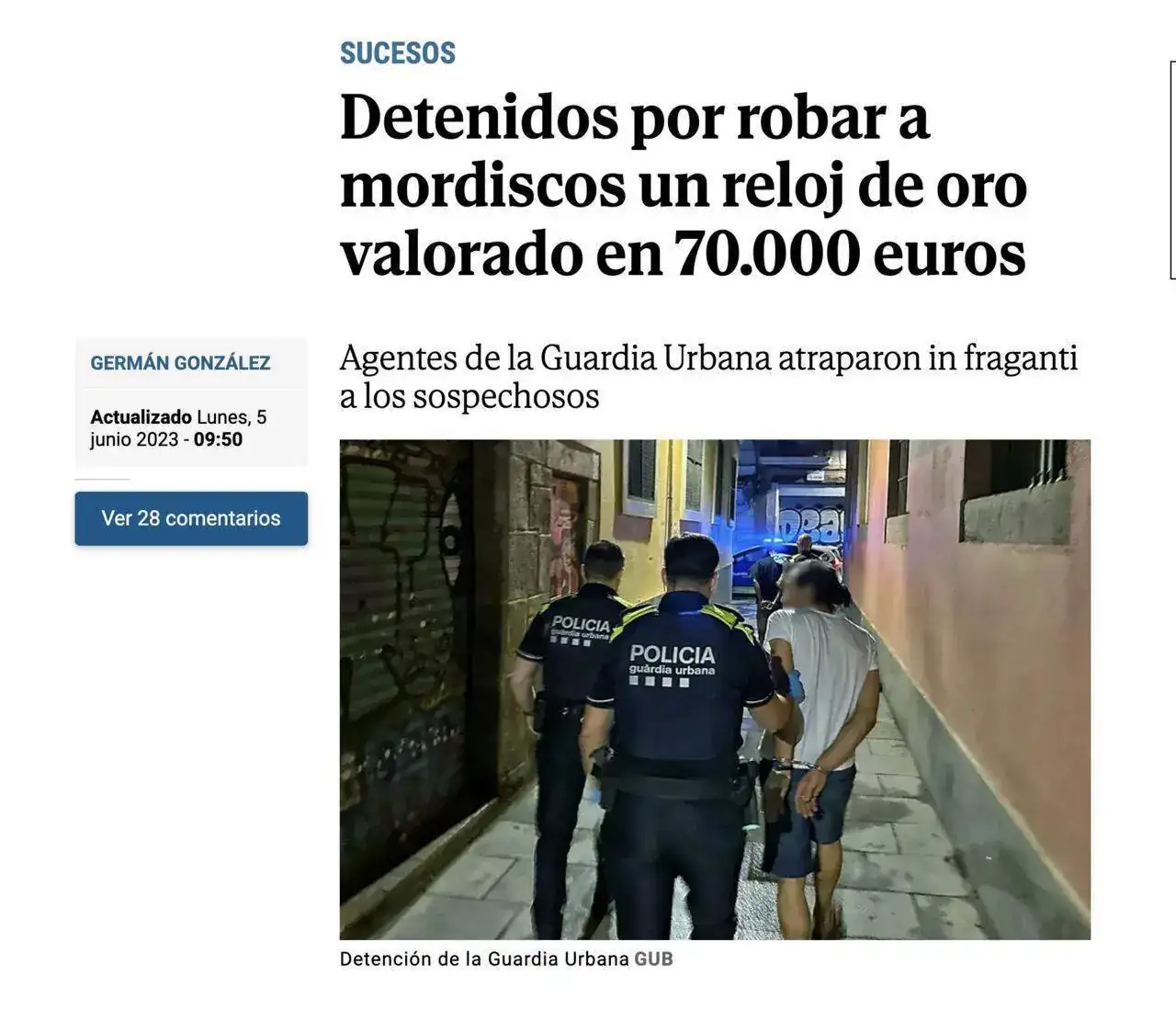 Da miedo, asco y repelús ver a nuestra ciudad de esta manera. Ya habrá que ir advirtiendo a los turistas que se dejen en casa los relojes y que tampoco vengan con fakes, no vaya a ser que te arranquen la mano por un chinorris de 100€. Si hubiera más mano dura y menos buenismo, quizás alguna cosa cambiaría. De mientras, seguirán lloviendo noticias de este tipo que cada día sorprenden menos, a bocados, a tirones, a navajazos y lo que haga falta. Faltaría más.