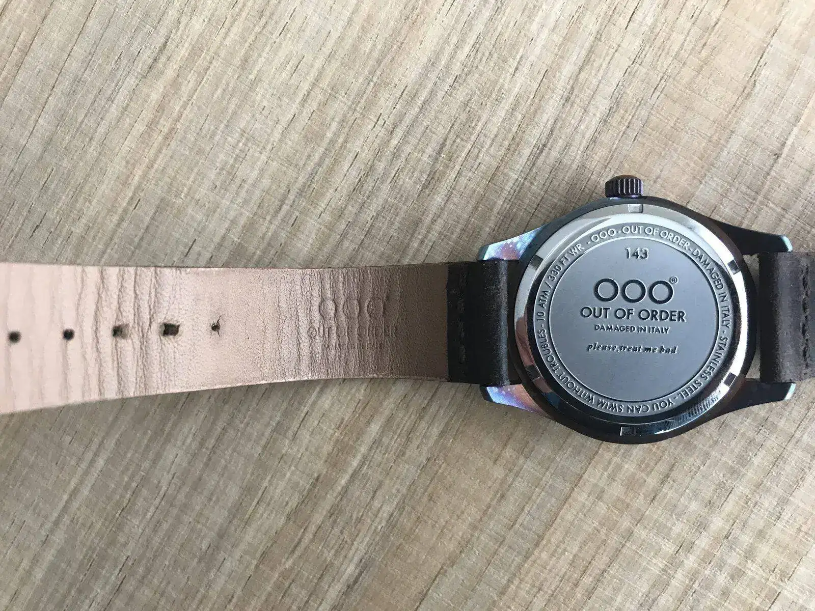 Se trata de un reloj de la micromarca italiana OOO - Out of Order® Watches y es un poco especial porque diseñan relojes “dañados”. Su lema es “Damaged in Italy” y tienen una apariencia envejecida adrede. No hay dos piezas iguales.