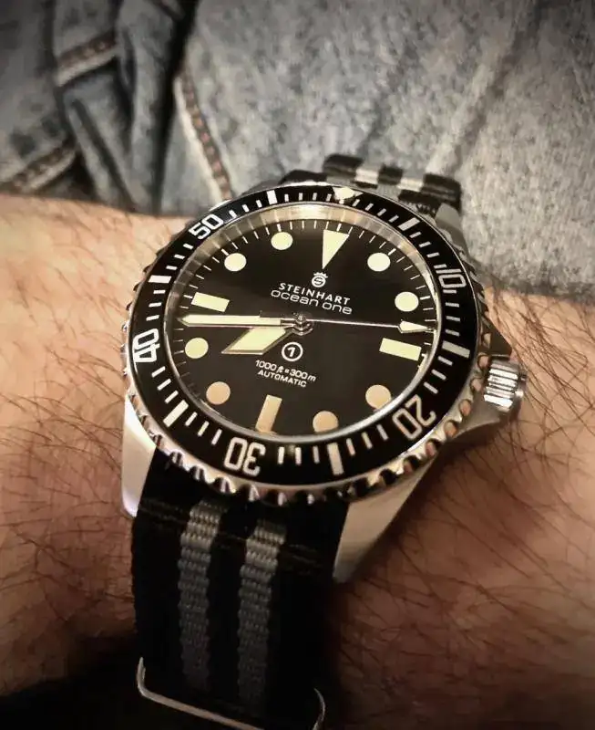 Lo bueno de este homenaje es que no es tan instantáneamente reconocible por cualquiera como los otros "Subs" de Steinhart y en cualquier caso, la inspiración del Milsub en el Seamaster 300 que "prestó servicio" antes que el es muy evidente, así que...