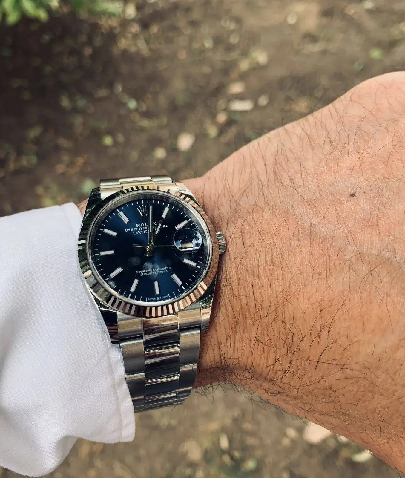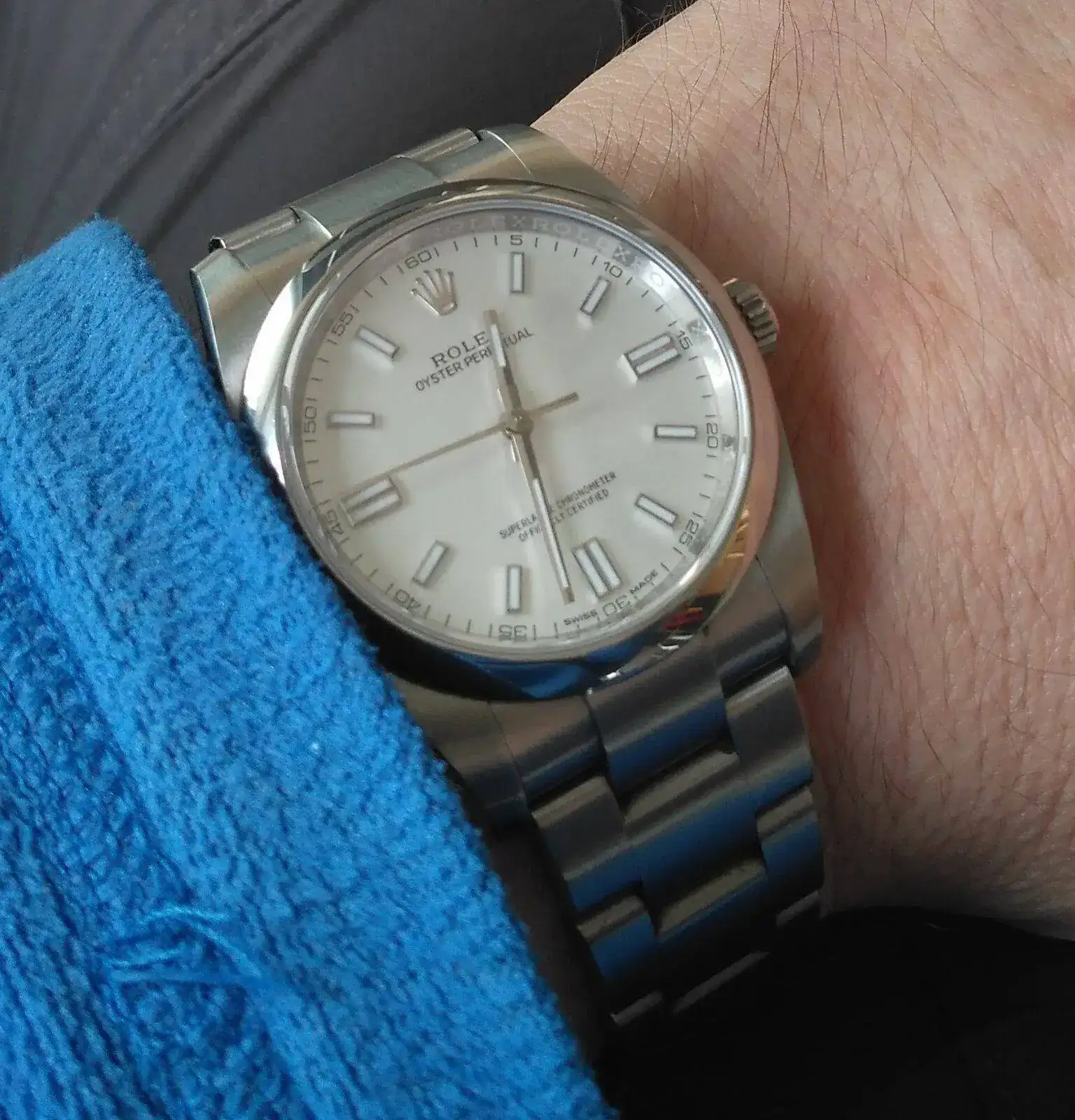 Yo soy de medidas contenidas , pero el date just 41, sienta muy bien en la muñeca, como fue regalo de mi mujer , poco eleg… pero reconozco que puesto gana, sobretodo en comodidad y pasa desapercibido al no tener bisel estriado ( quizás yo lo hubiera elegido estriado, aunque también es cierto que con esa combinación, Rhodium ,jubile y estriado quizás muy recargado…) en 36 lo tuve claro, un color azul , más tono deportivo creo que le queda mejor el oyster , y al tener el otro bisel liso en este no cabía duda posible… aún así, creo que cualquier elección es acertada!Alucinante tu 36mm.